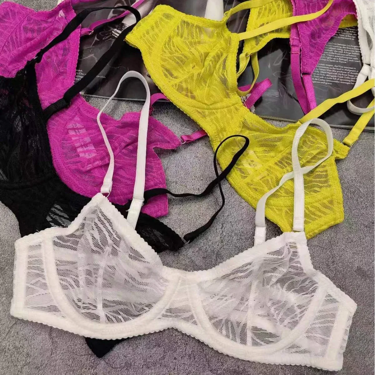 Ellolace Zebra Lingerie French Underwear Translucent Sexy Intimate Brief Set Seamless Matching Outfits Romantic Fancy Bra Thongs