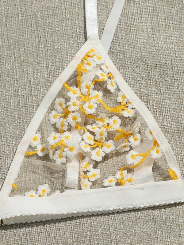 Embroidered Pattern Girl Bra Comfortable Seamless Pure Cotton Thin Small Breast Push up Fresh Girl Sexy Lingerie
