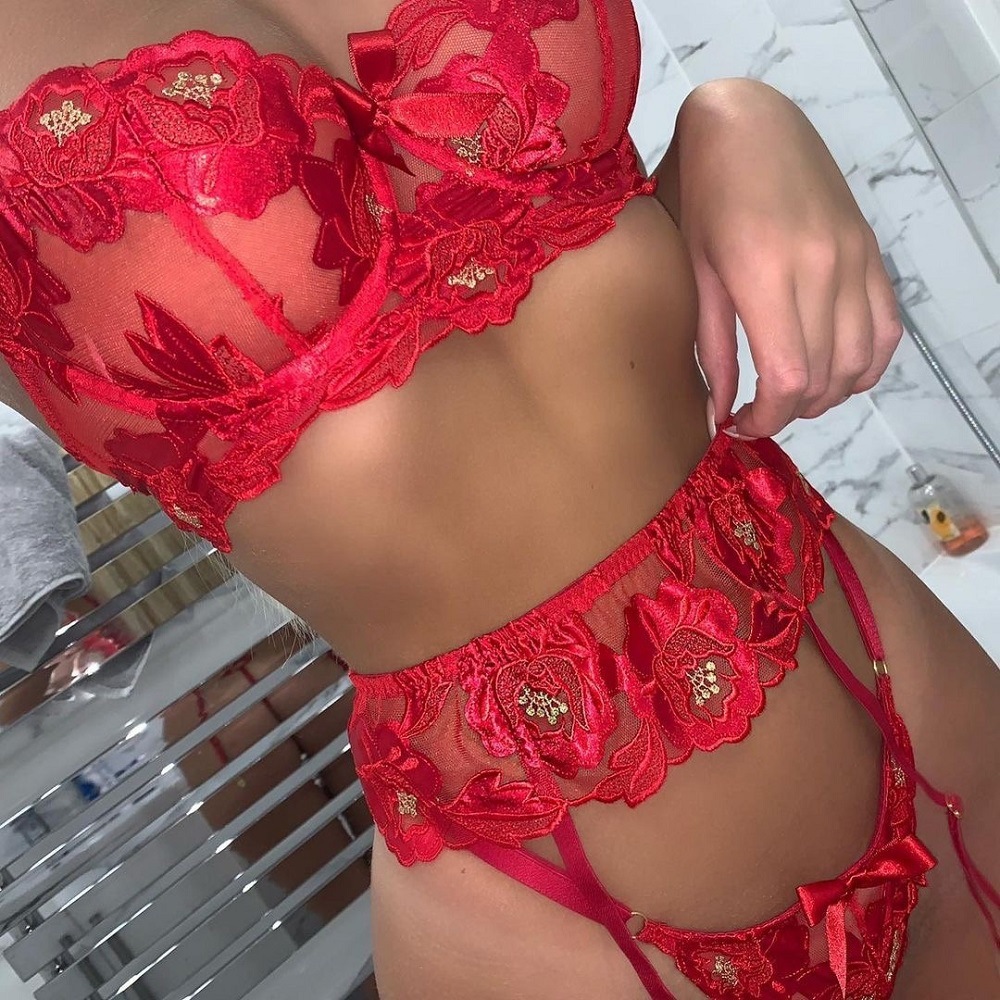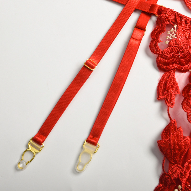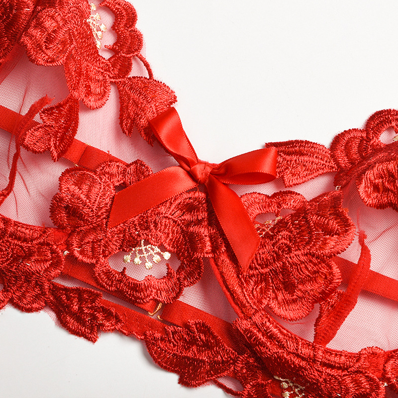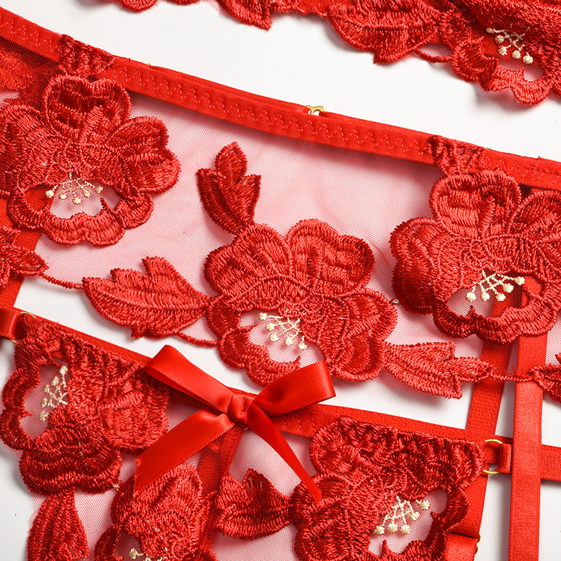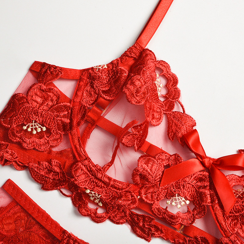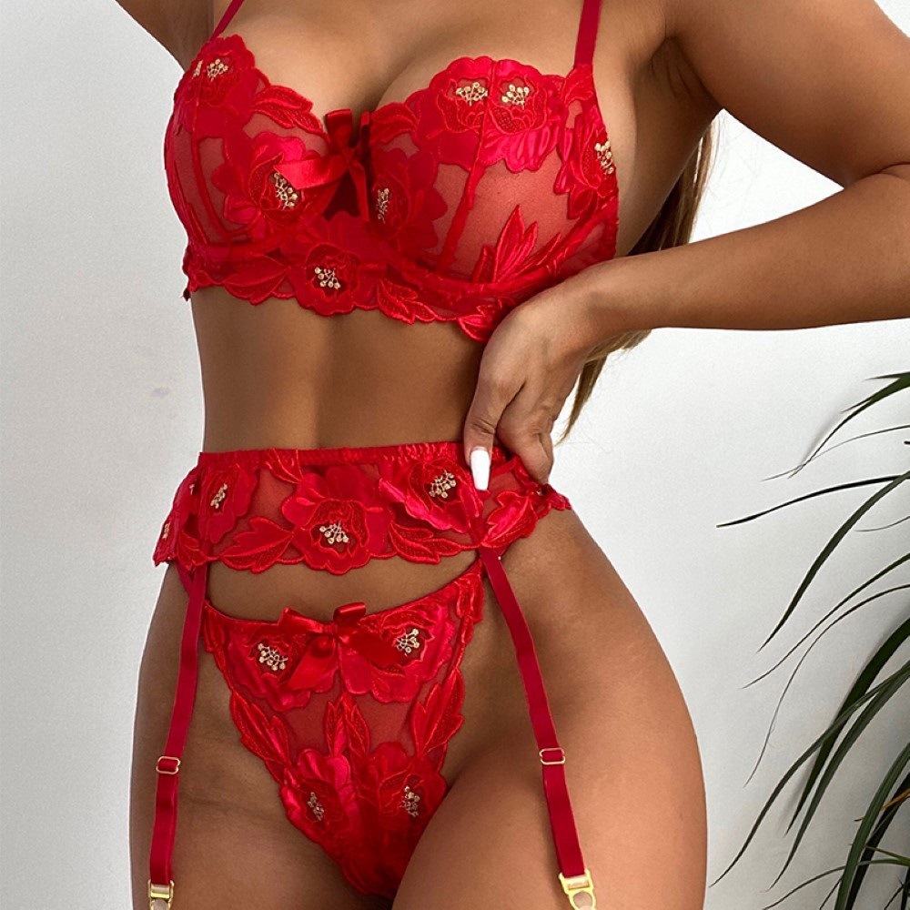 Embroidered Sexy Lingerie Three-Piece Floral Embroidery Steel Ring Push up Sexy Lingerie