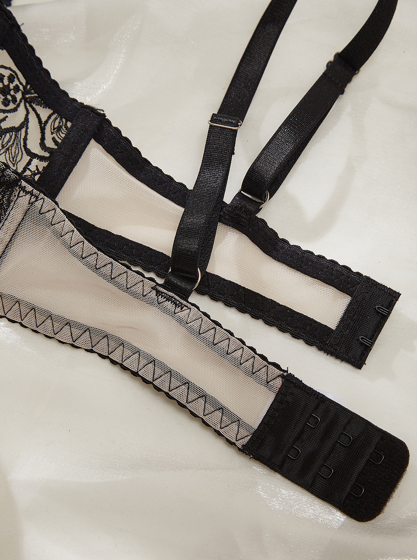 Embroidery Splicing Mesh Sexy Bra Color Contrast Sexy Underwear Two Piece