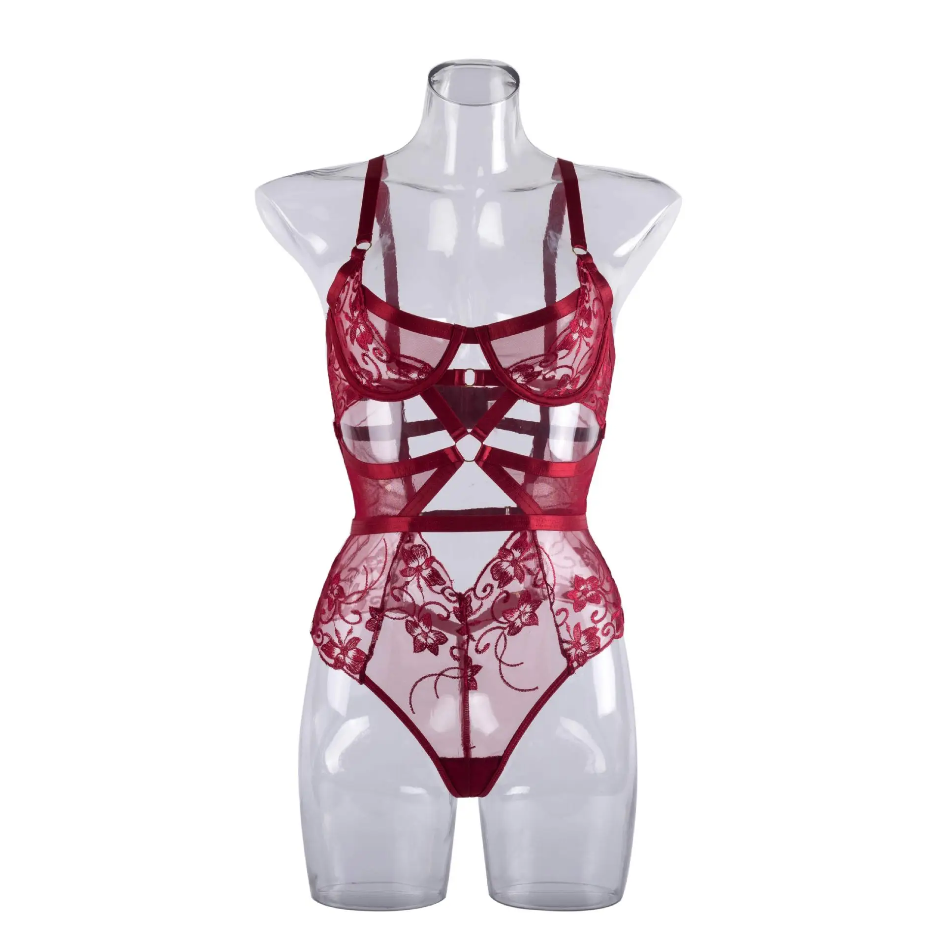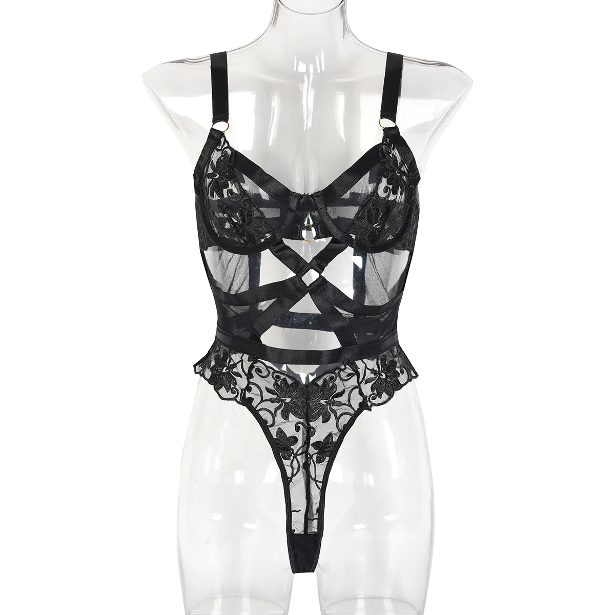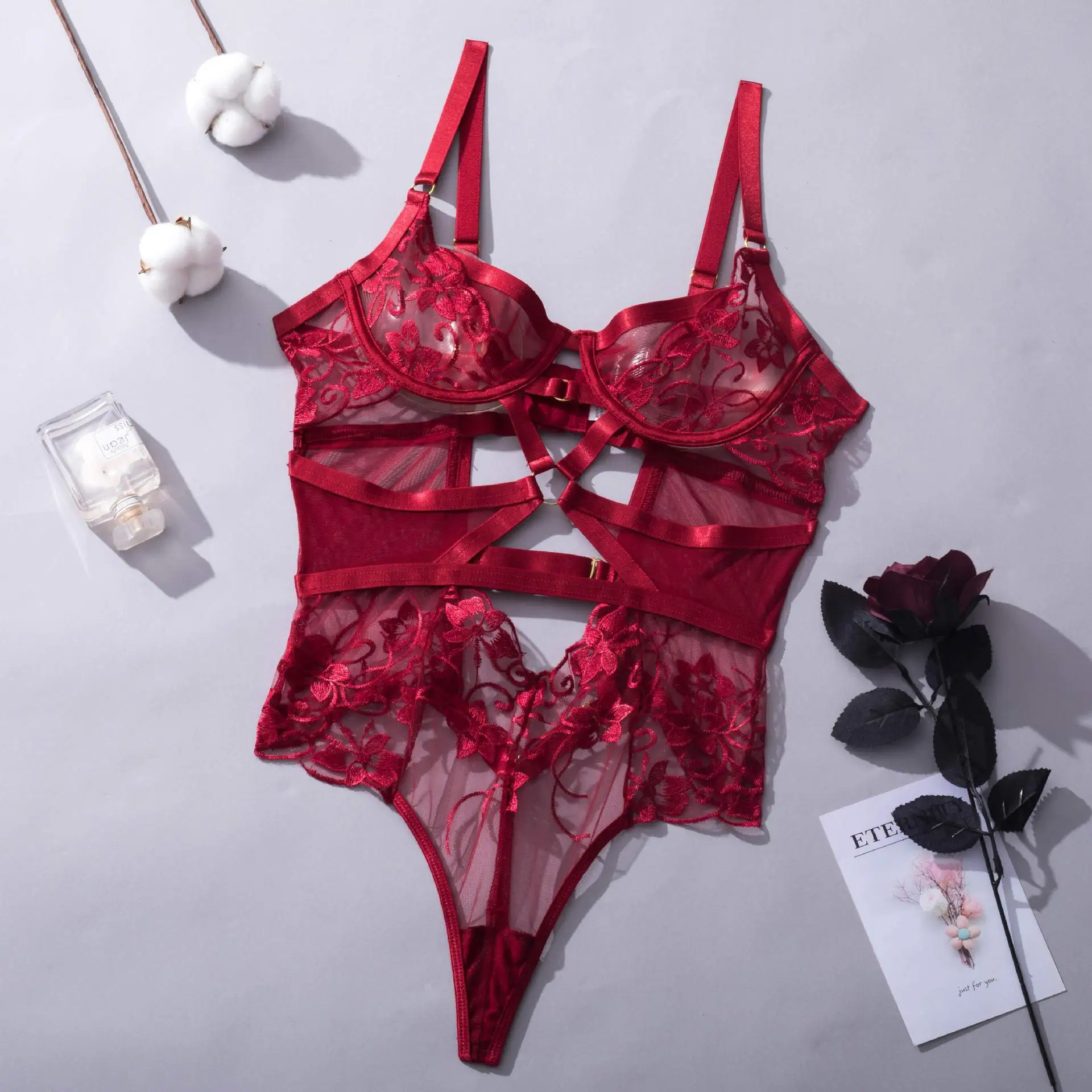Bodysuit Lingerie Cut Out See-Through One-Piece Body Backless Thongs Teddy Embroidery Hot Tights