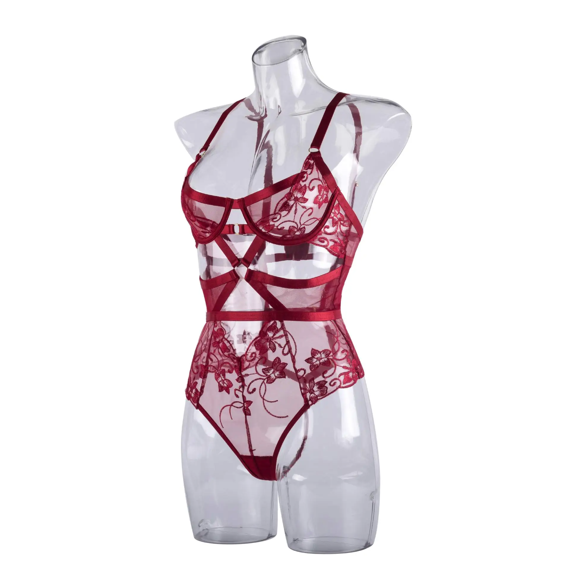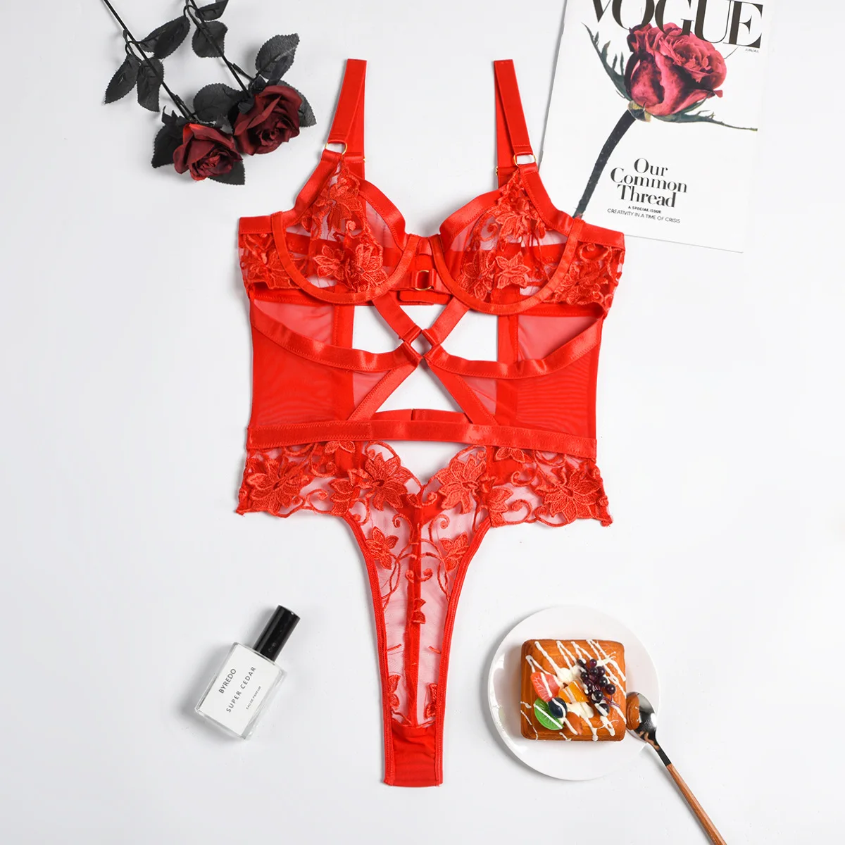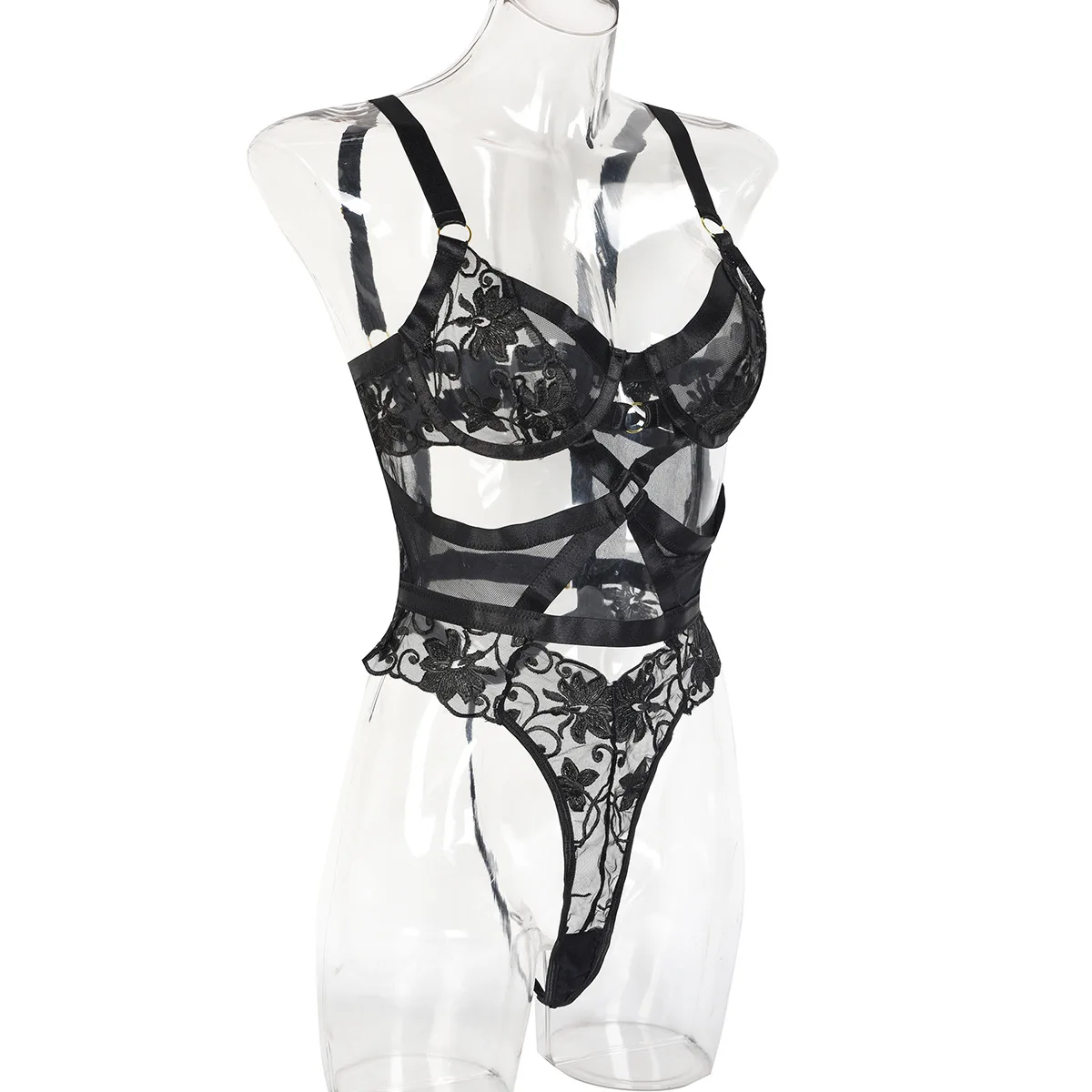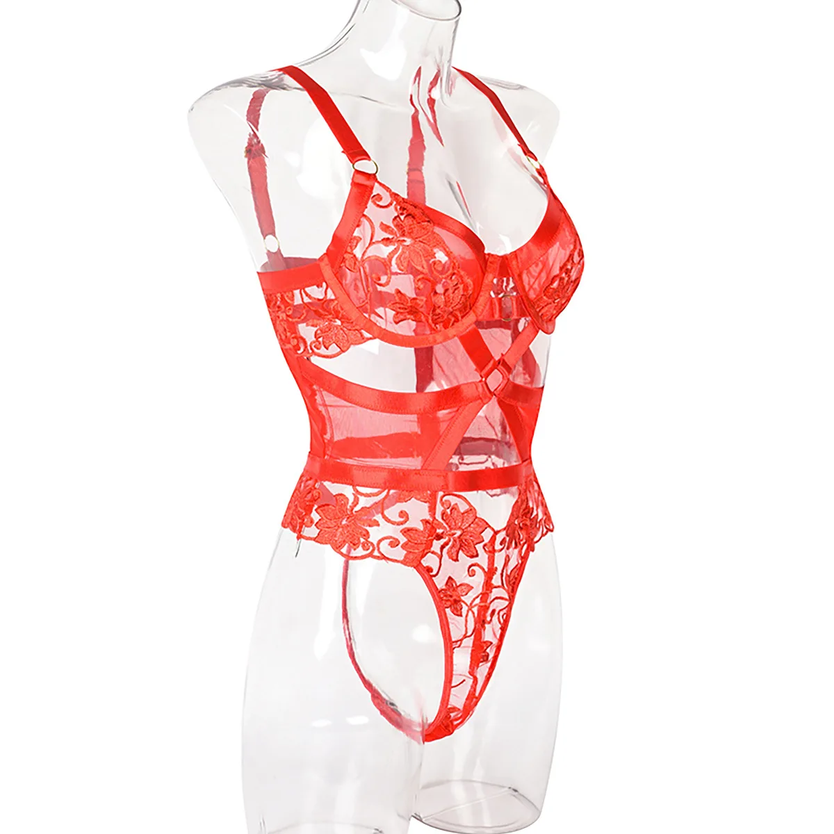Bodysuit Lingerie Cut Out See-Through One-Piece Body Backless Thongs Teddy Embroidery Hot Tights