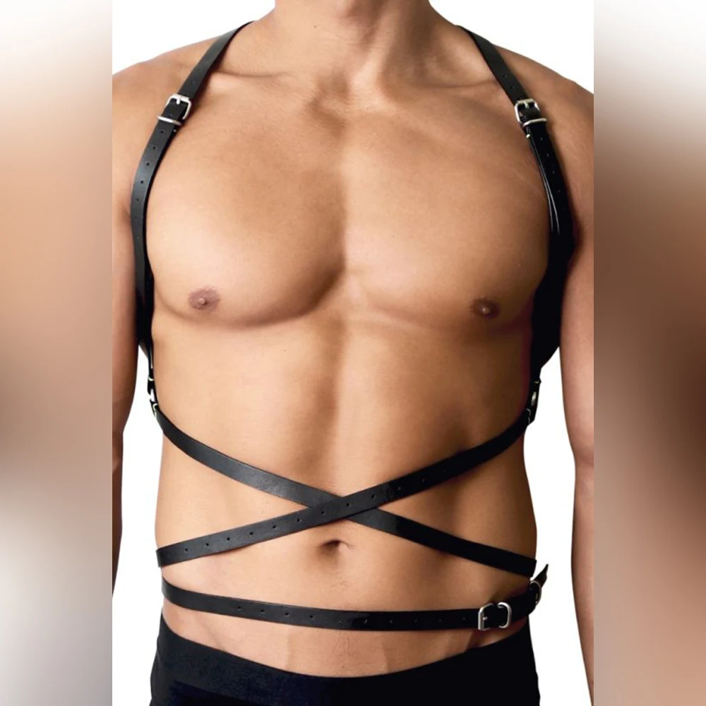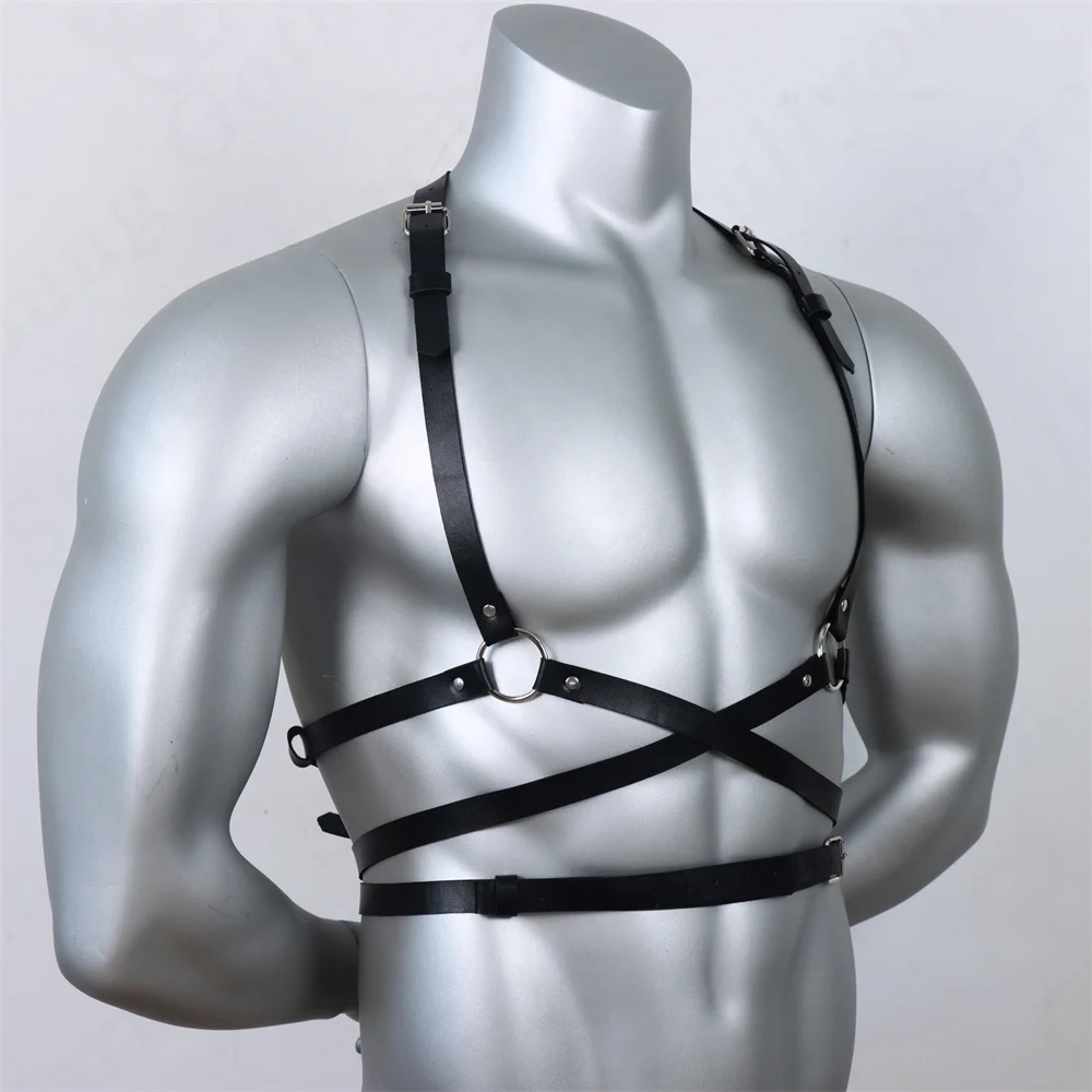 Men Leather Harness Lingerie Tops Male Clothes Body Chest Harness Belts Suspenders Gothic Punk Gay Costumes