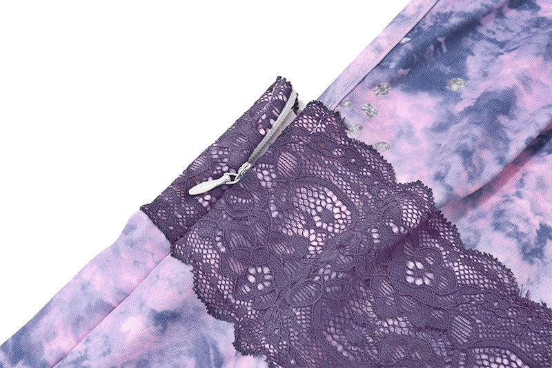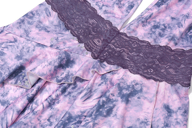 European And American Sexy Hot Girl Halter Deep V-neck Hollow-out Lace Temperament Dress
