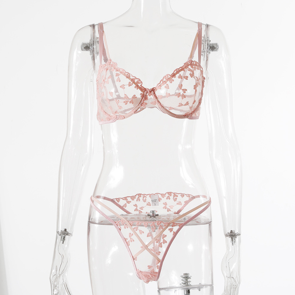 European And American Women's Crochet Lace Perspective Bow Lingerie