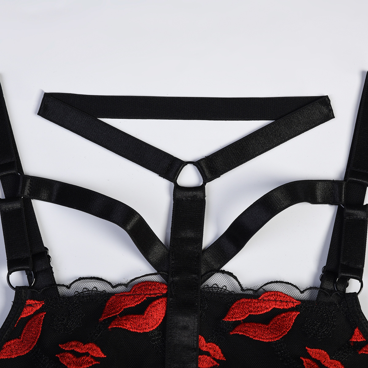 Exclusive for Popular Sexy Girl Embroidery Lip Jumpsuit Base Clothing Buckle Detachable