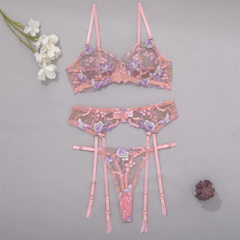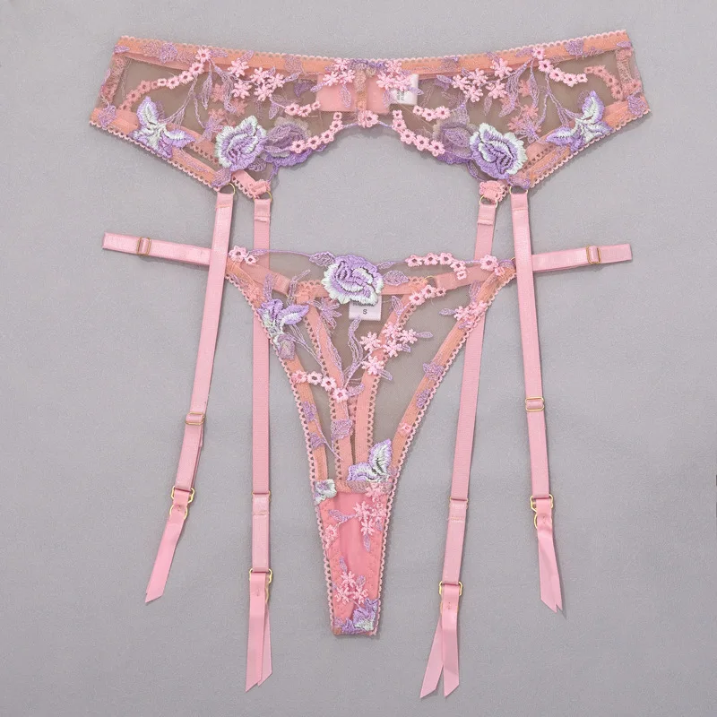 Fancy Lingerie Floral Transparent Lace Brief Sets Sheer Lace Fairy Underwear Garter See Through Outfit