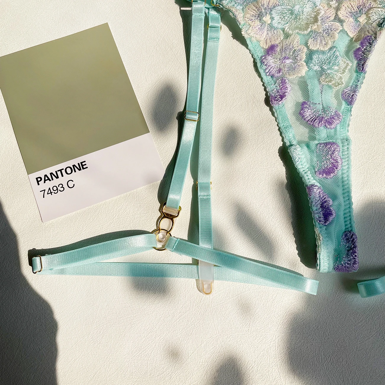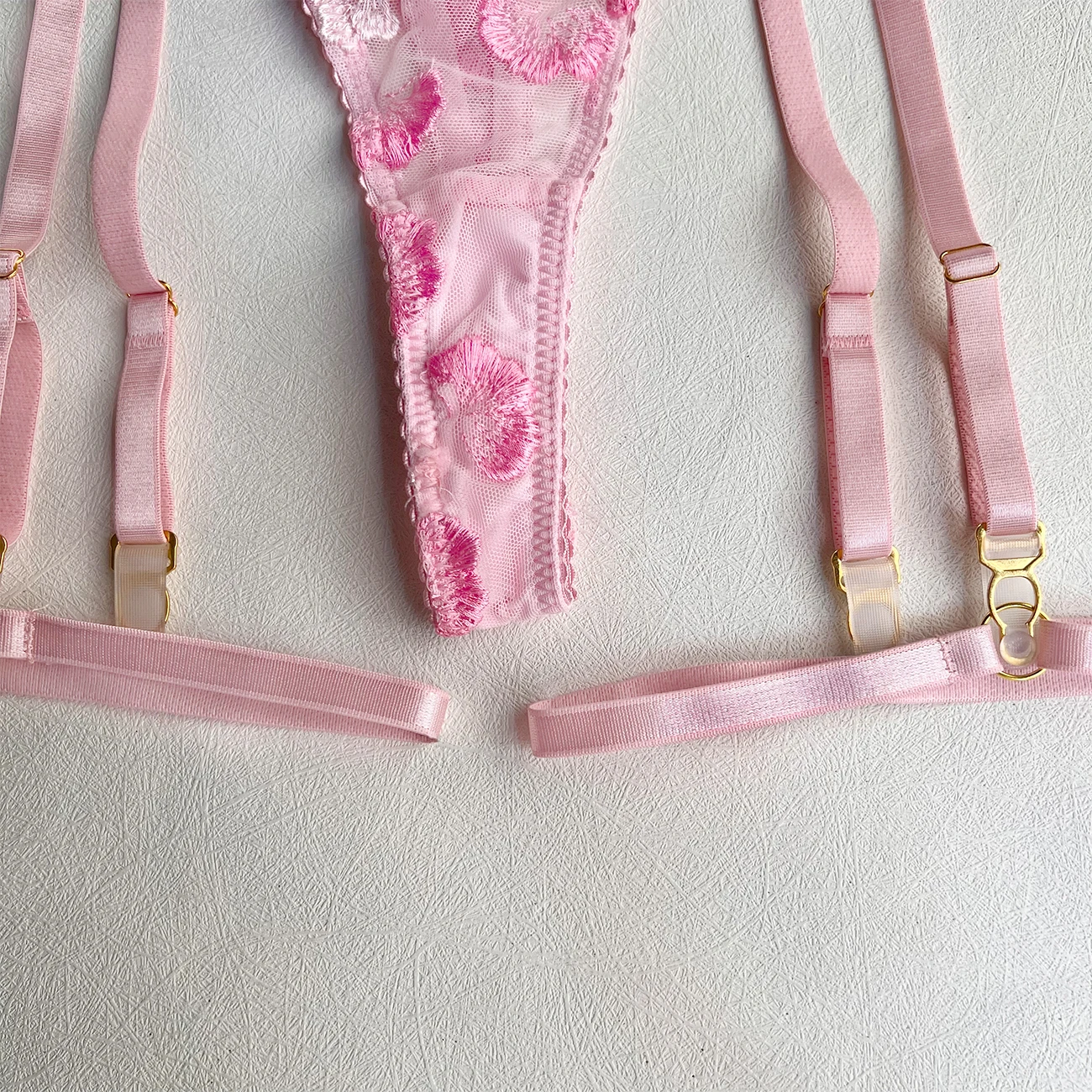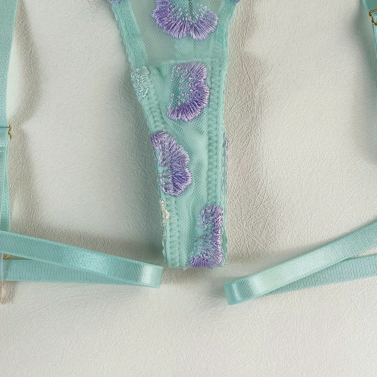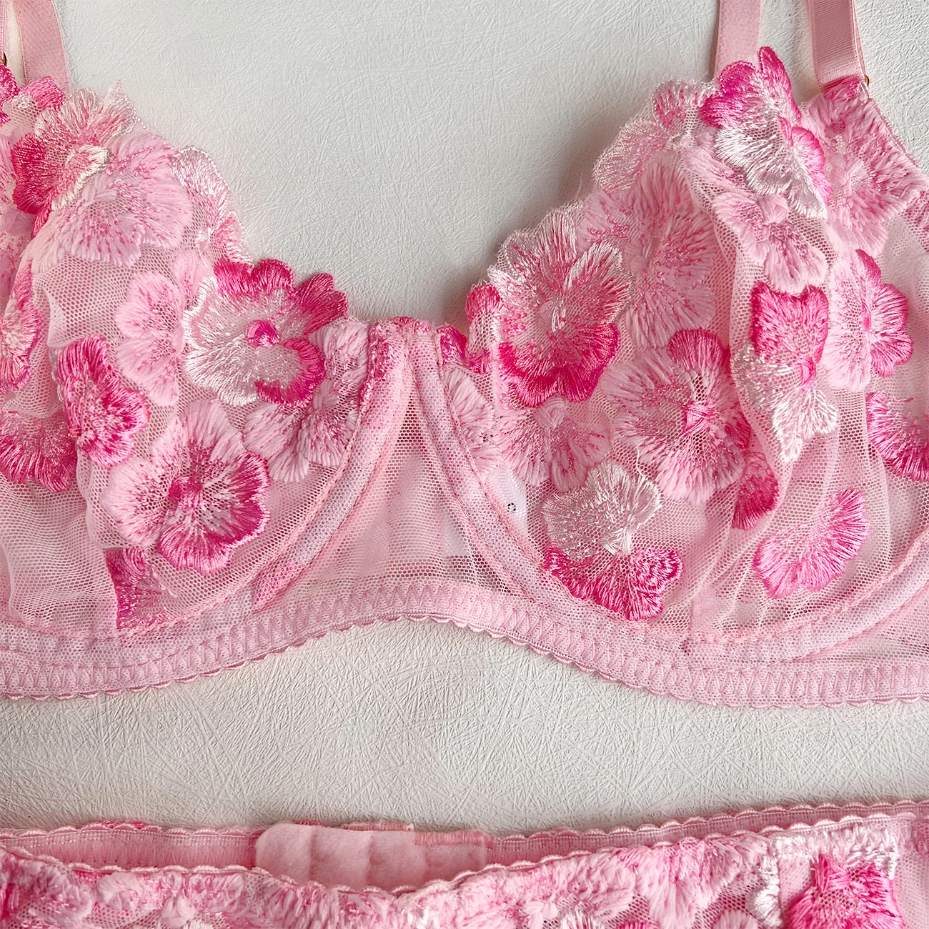 Fancy Lingerie Floral Embroidery Underwear 3-Piece Luxury Lace Garter Brief Sets Bra And Panty y Outfit Intimate
