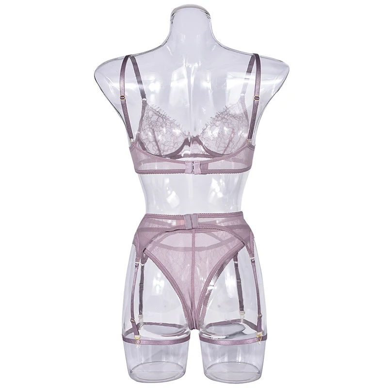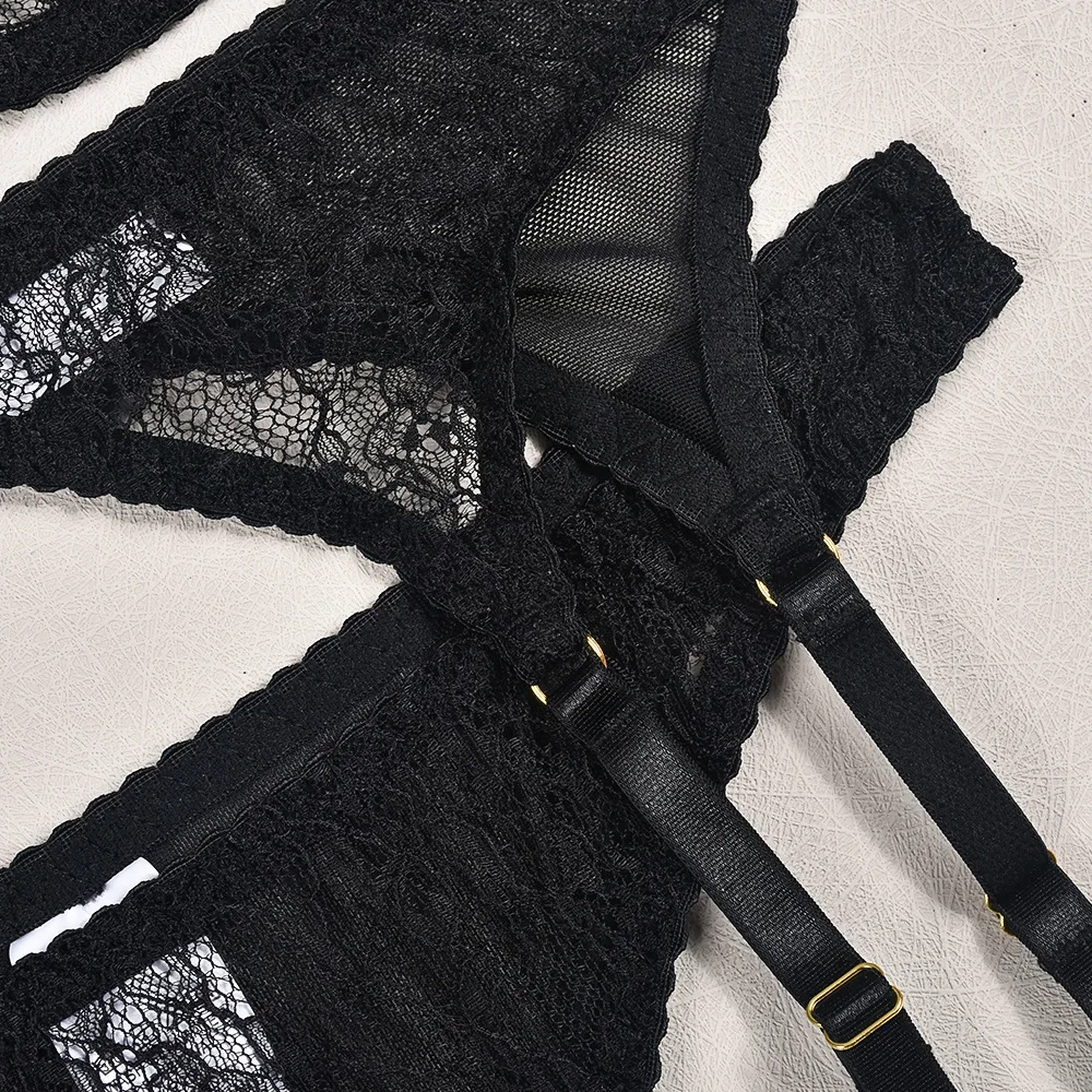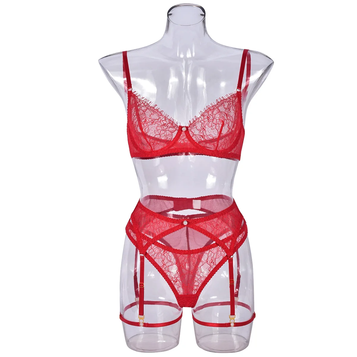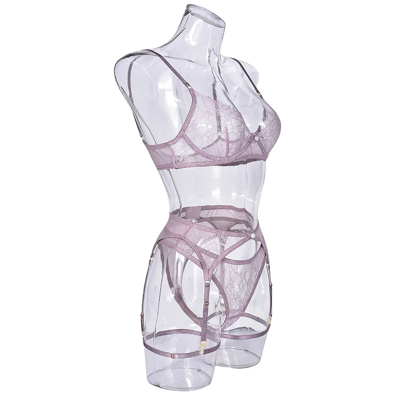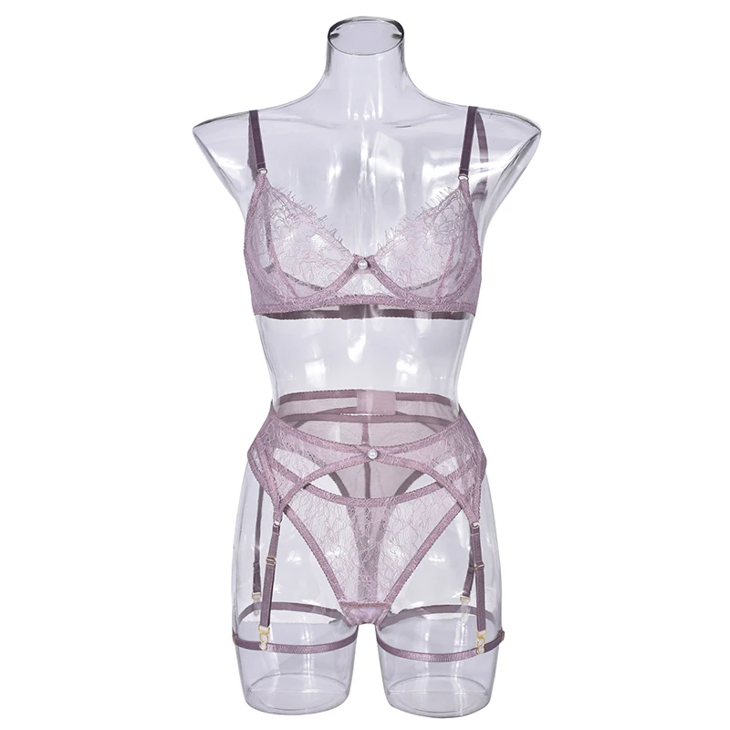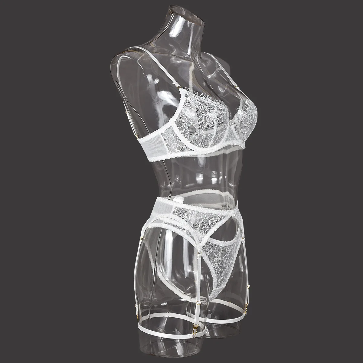 Fancy Lingerie Lace Seamless Underwear Pearly See Through Intim Goods Solid Bra And Panty Set Garters Outfit