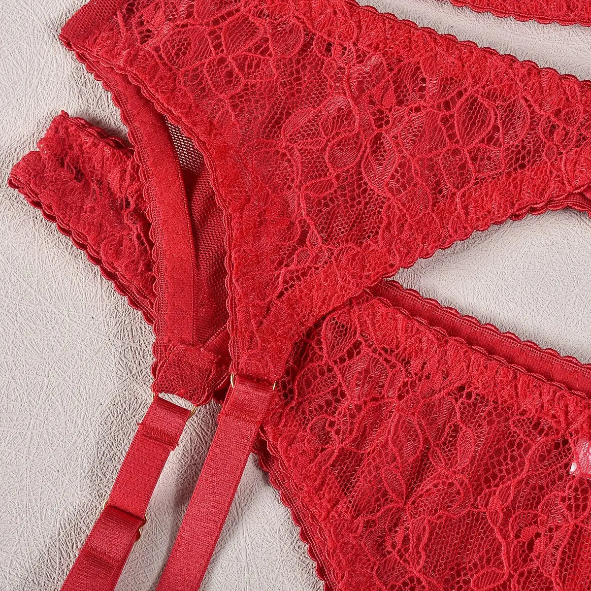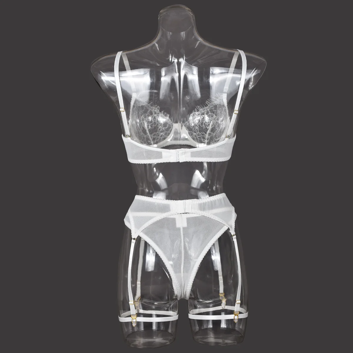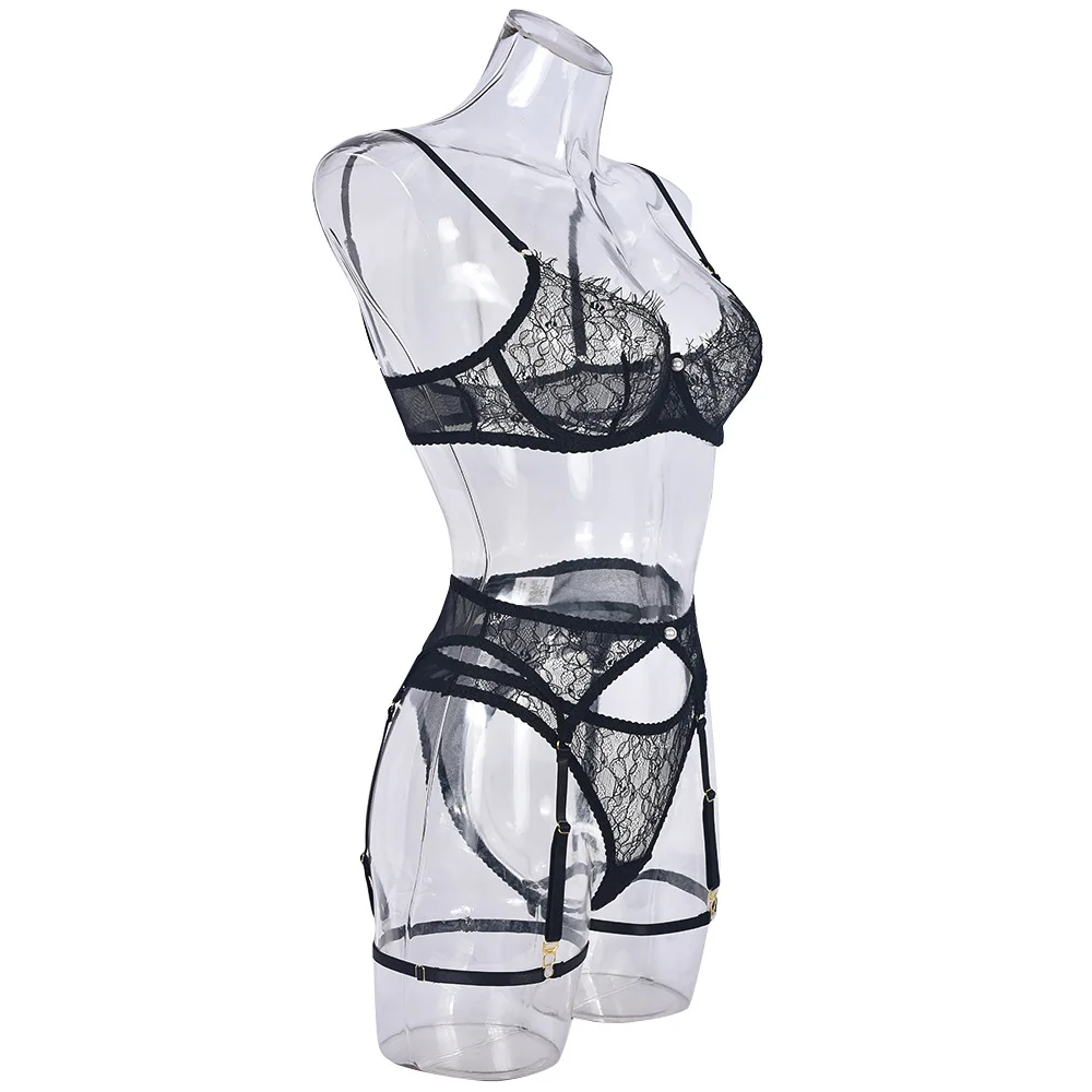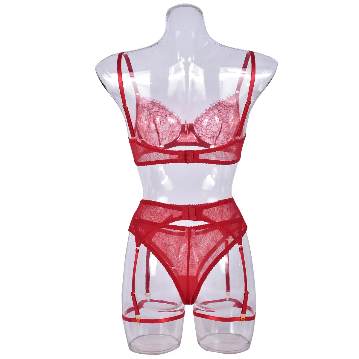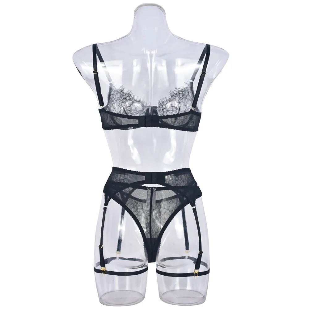 Fancy Lingerie Lace Seamless Underwear Pearly See Through Intim Goods Solid Bra And Panty Set Garters Outfit