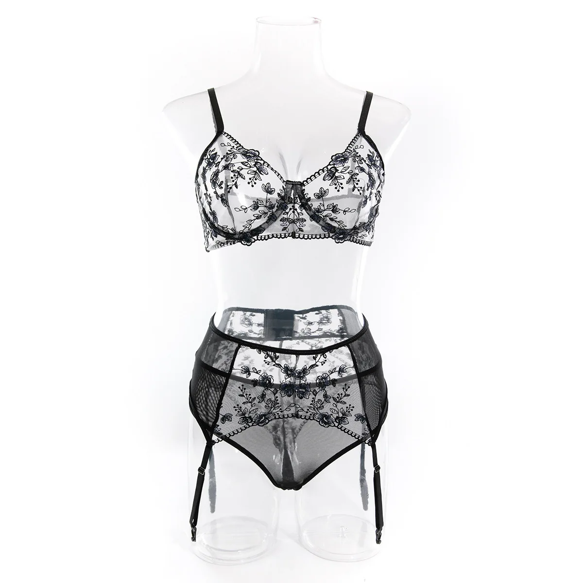 Fancy y Lingerie For Fine Women Push Up Bras Luxury Embroidered Mesh Underwear Fantasy Transparent Intimate Set