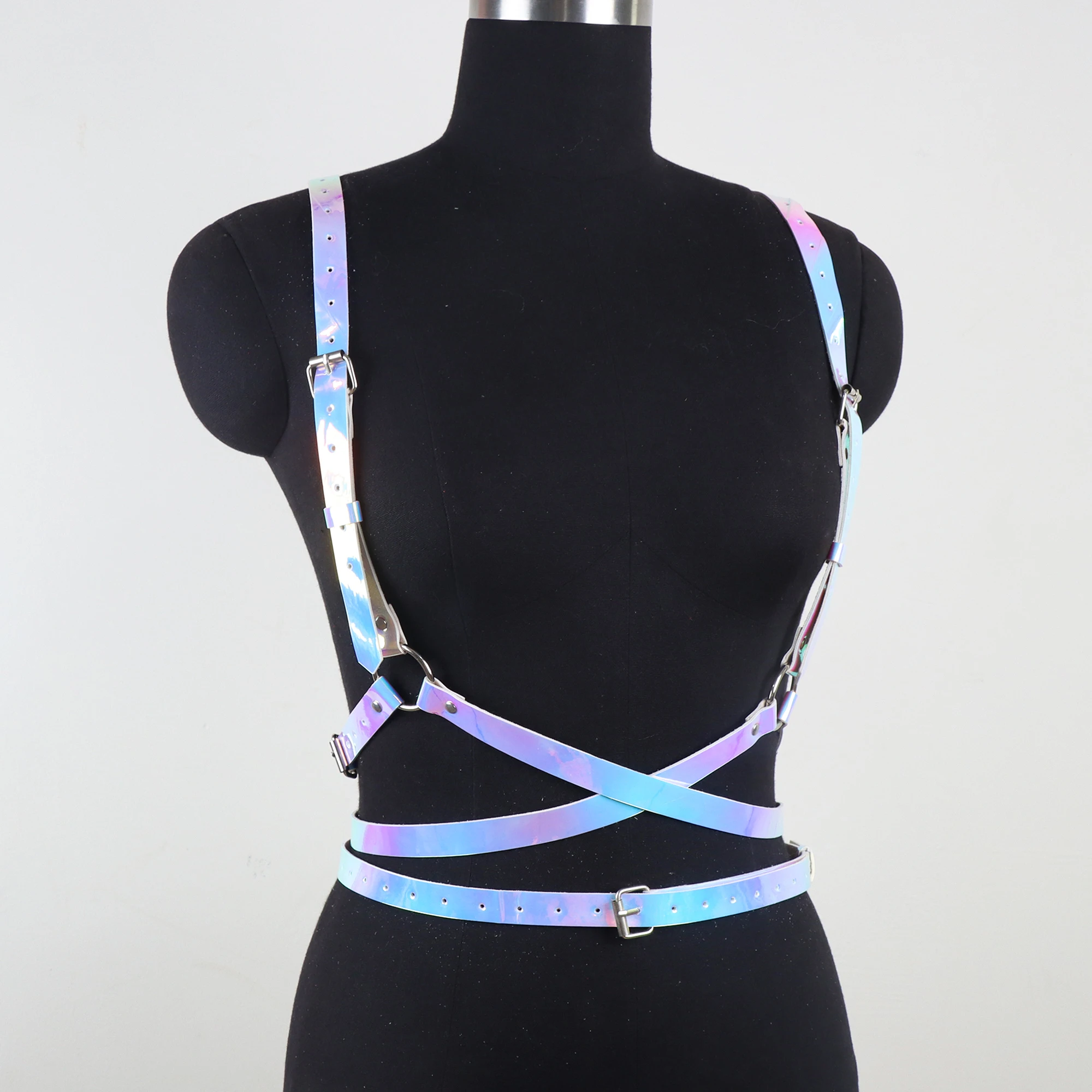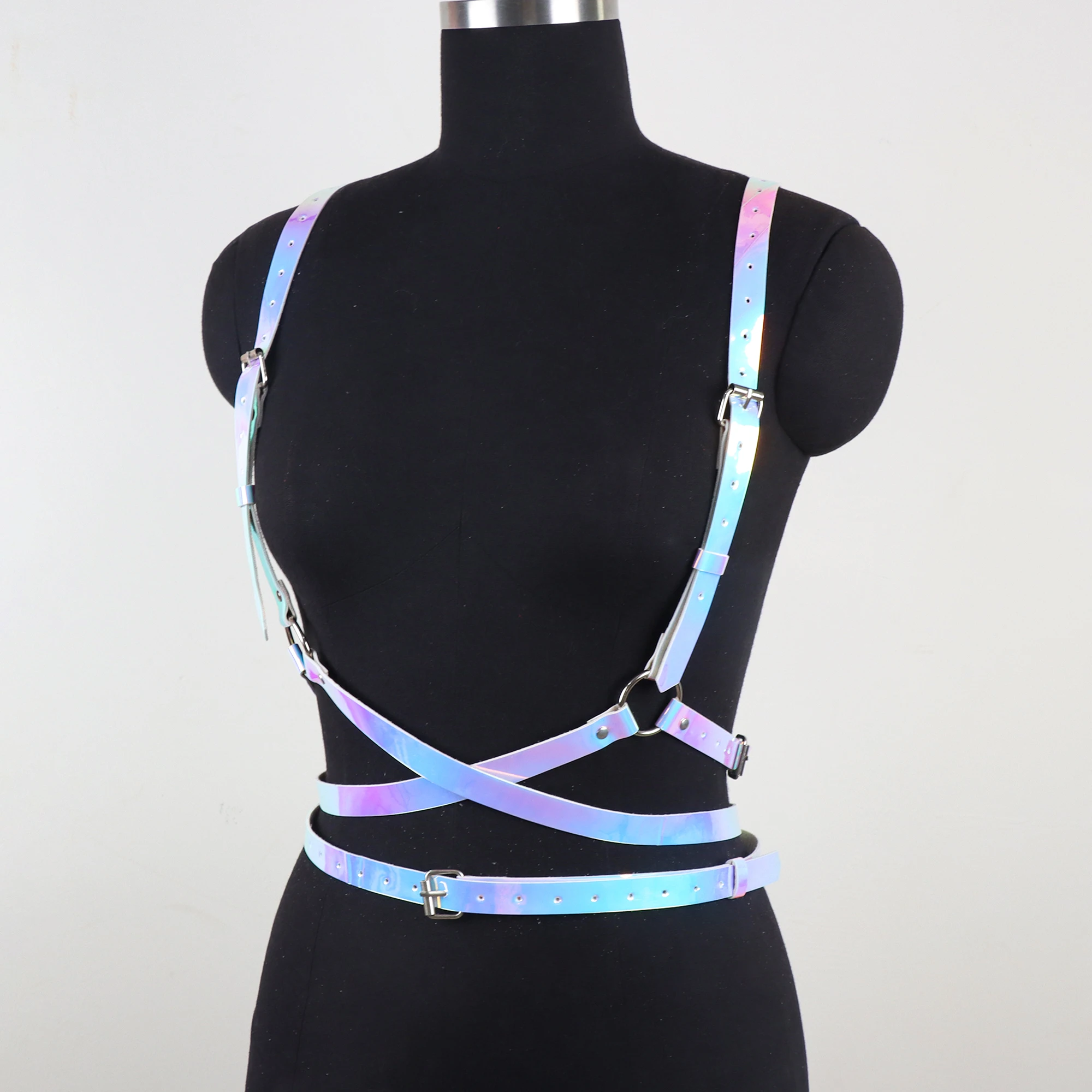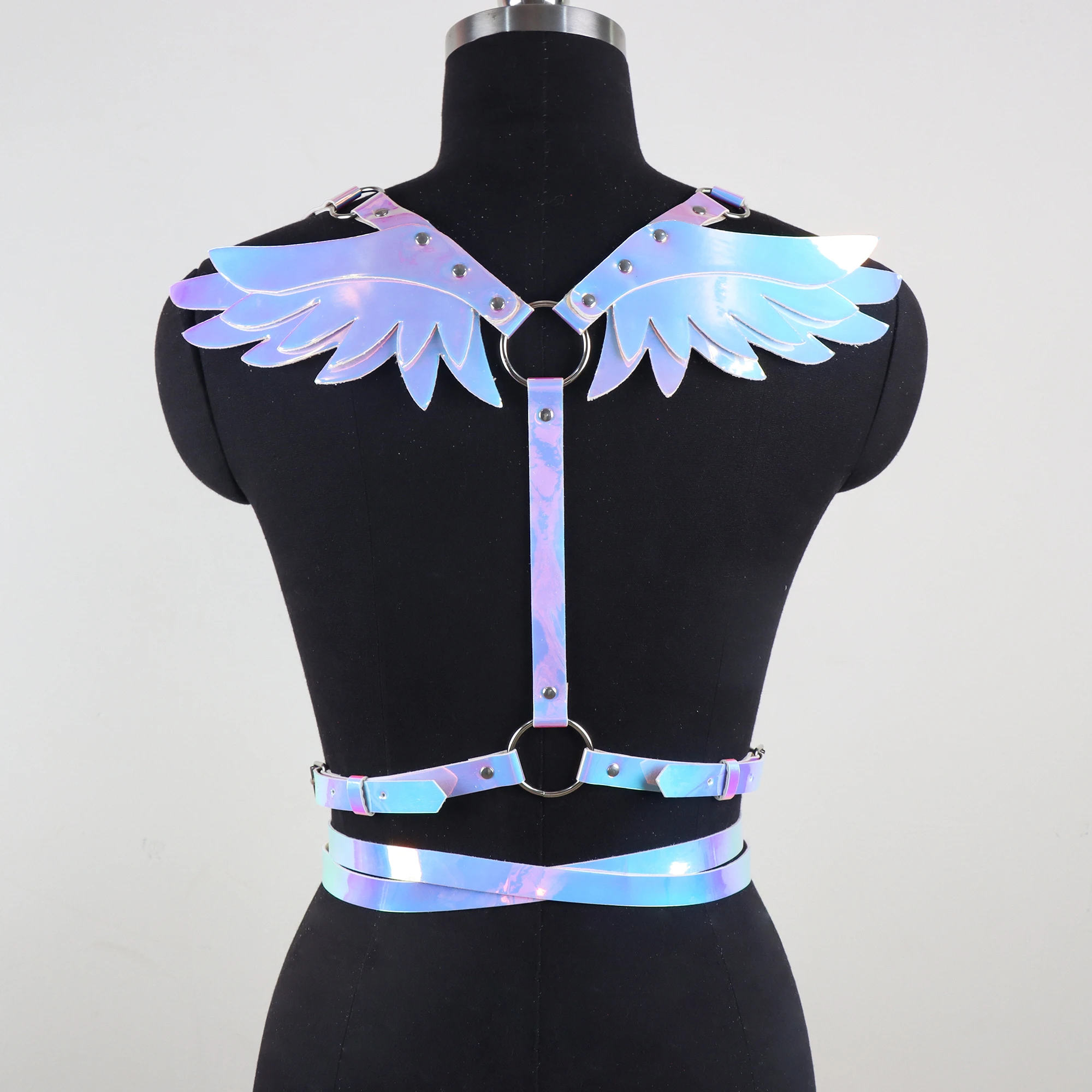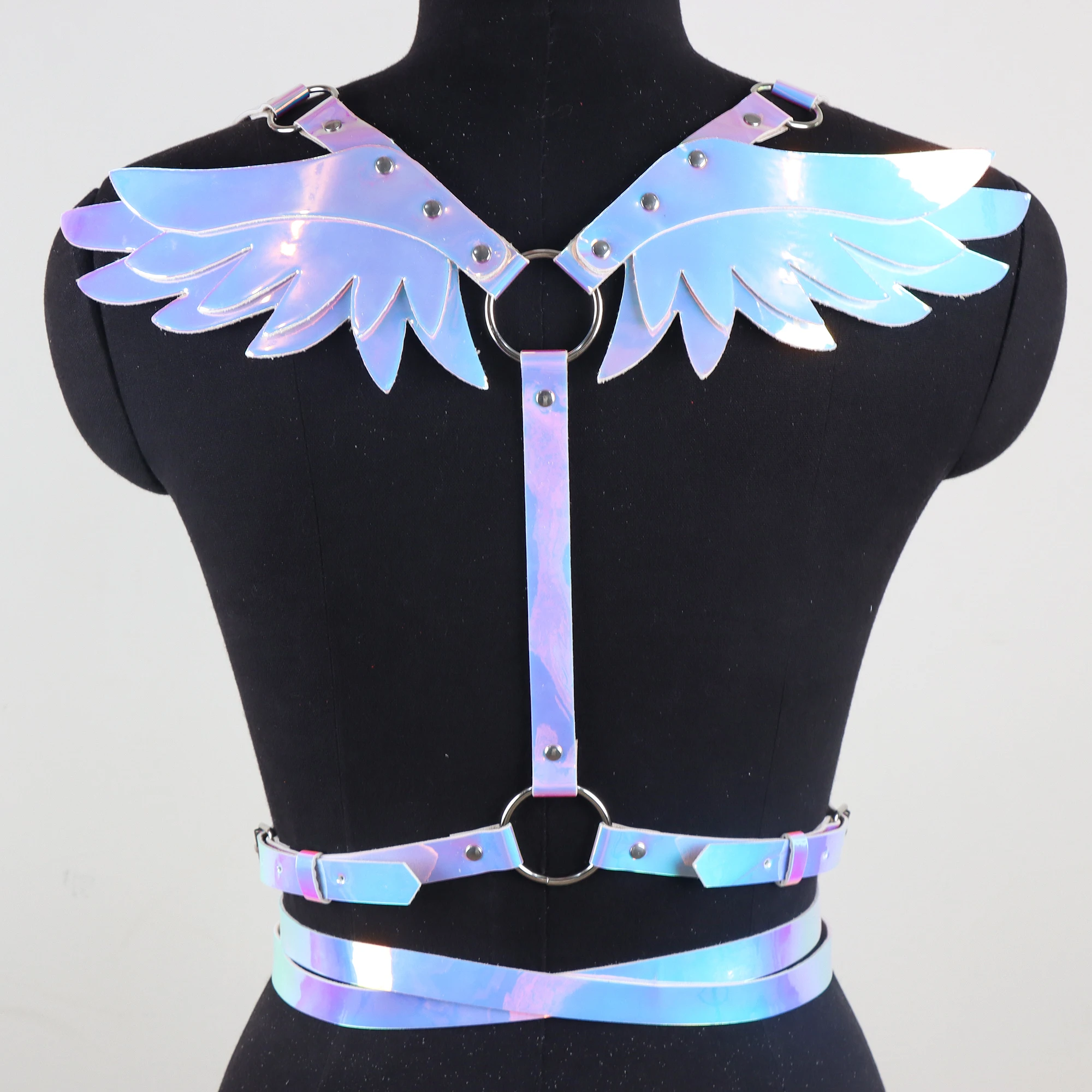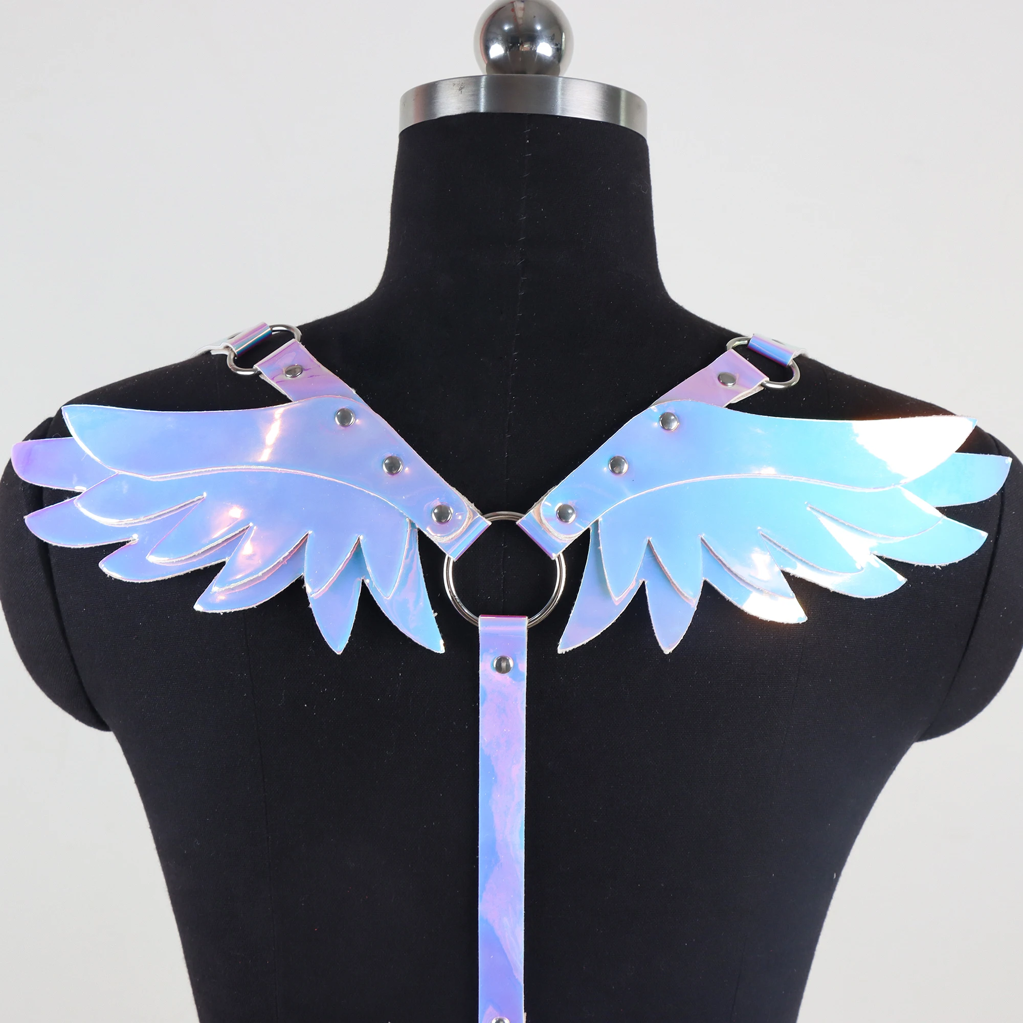 Fashion Laser Angel Wings Body Harness Double Shoulder Strap Leather Colthing Accessories Belt Punk Rave Garter