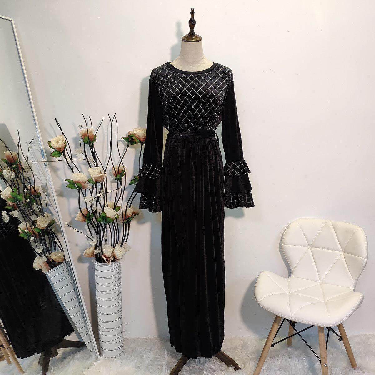 Fashion Oversized Women's Hot Stamped Flare Sleeves Golden Velvet Casual Dress