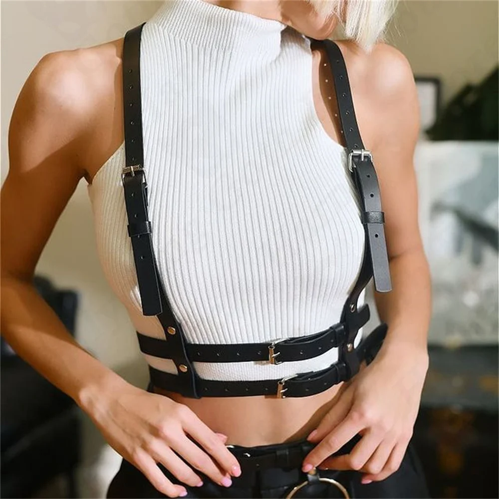 Fashion Pu Leather Harness Women Gothic Straps y Garter Belt Body Bra Suspenders Handmade Rave Festival Clothing