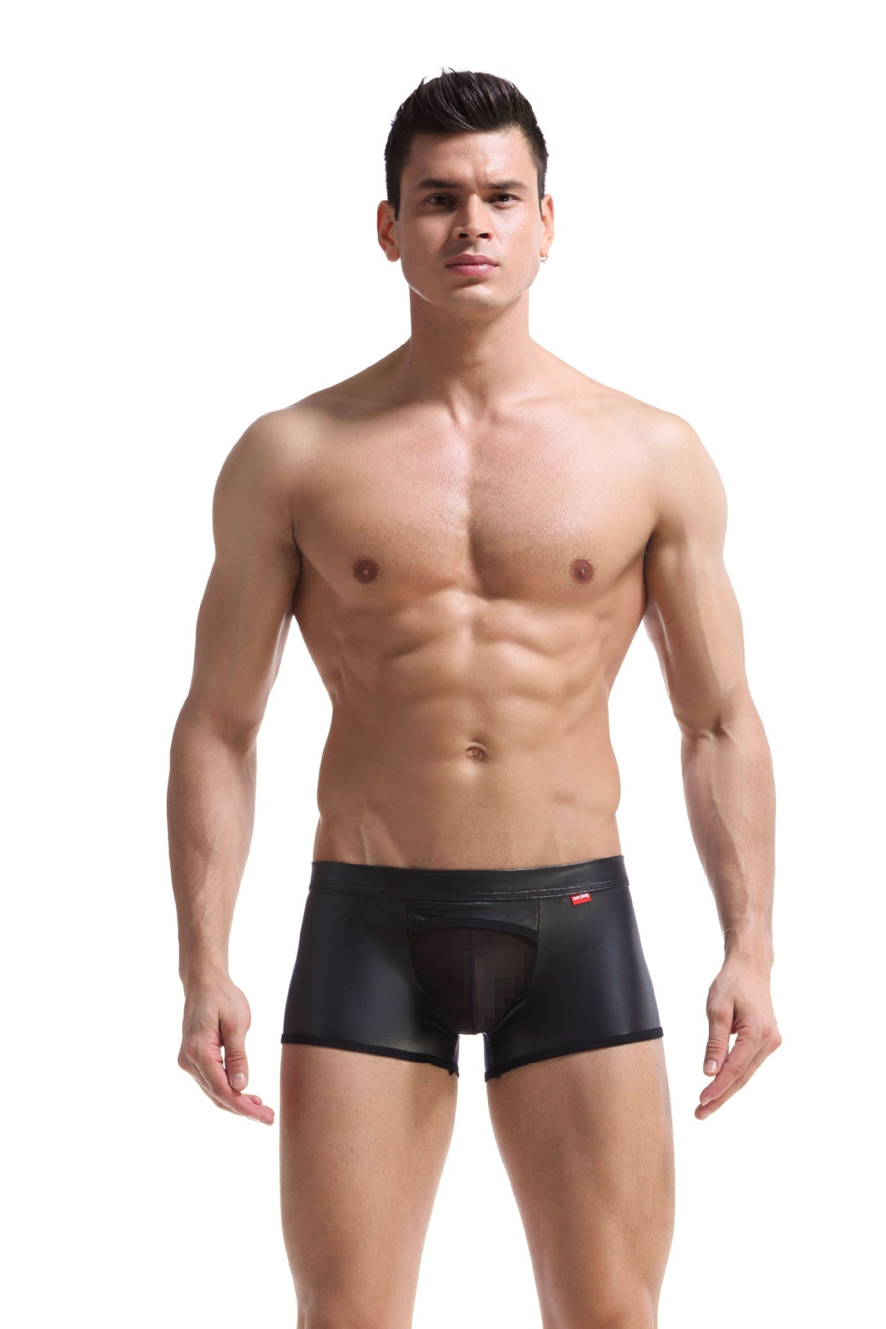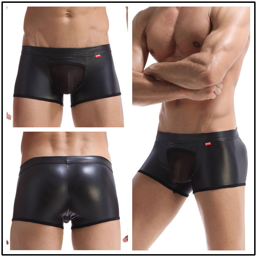 Faux Leather Hoop Patent Leather PU Boxer Briefs Sexy Lingerie