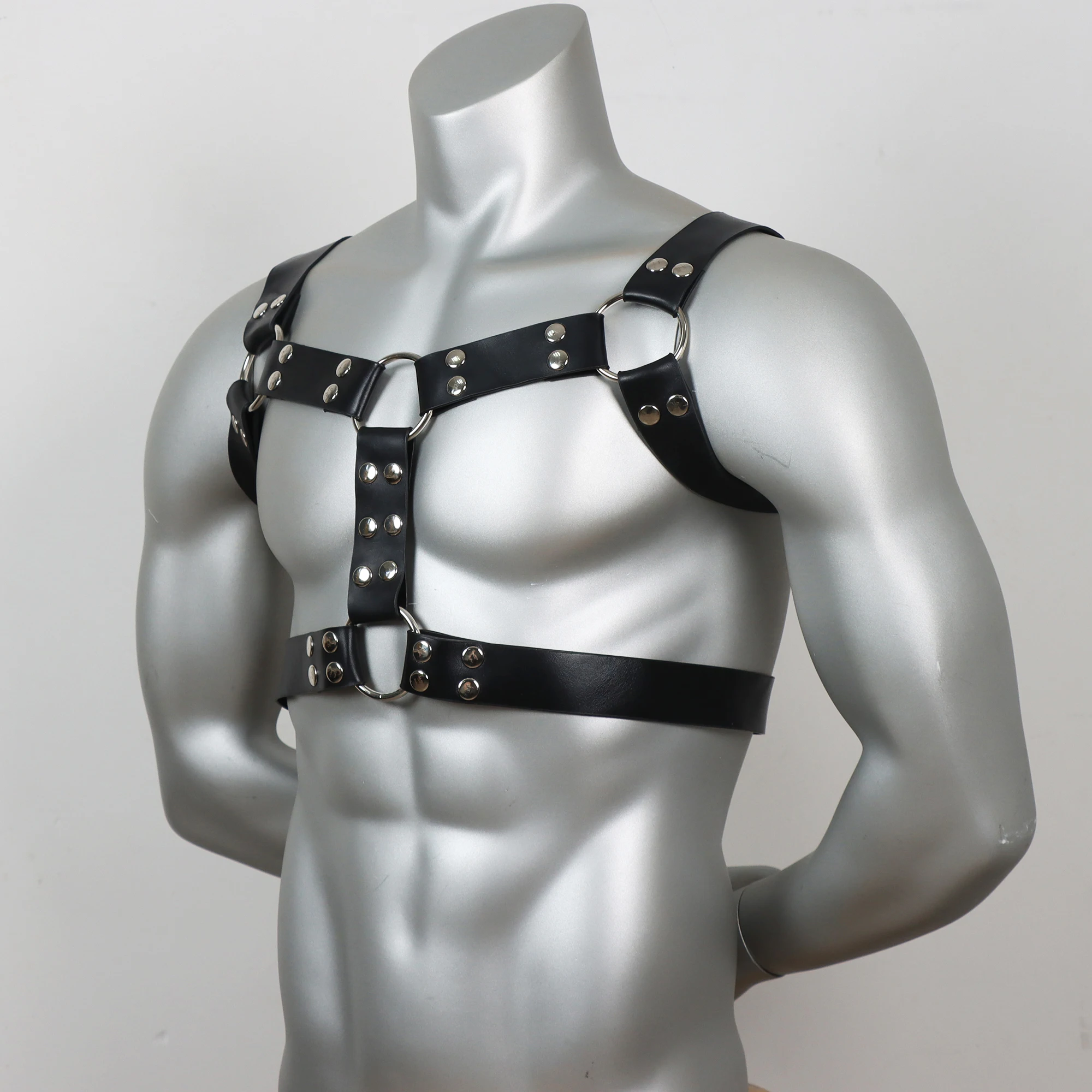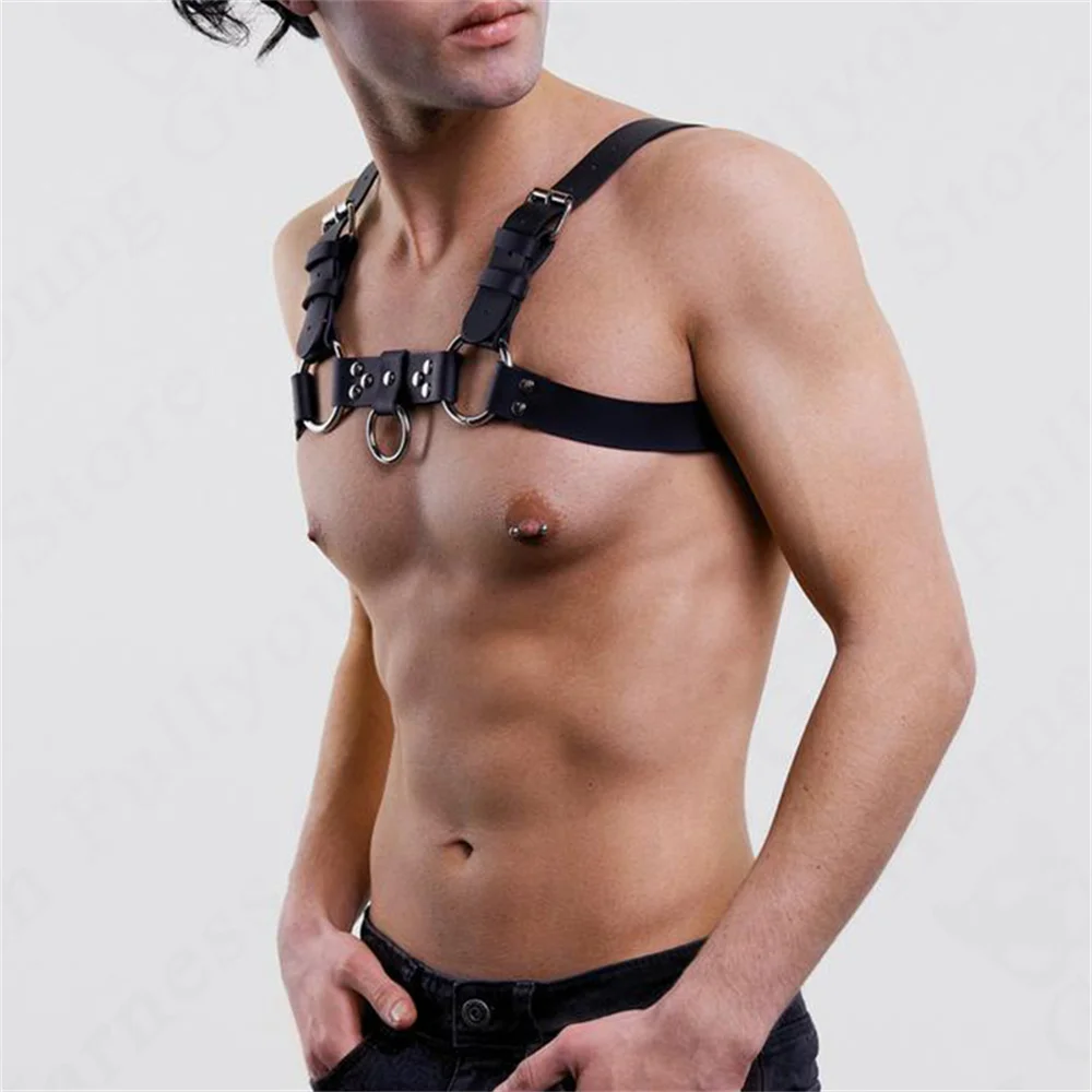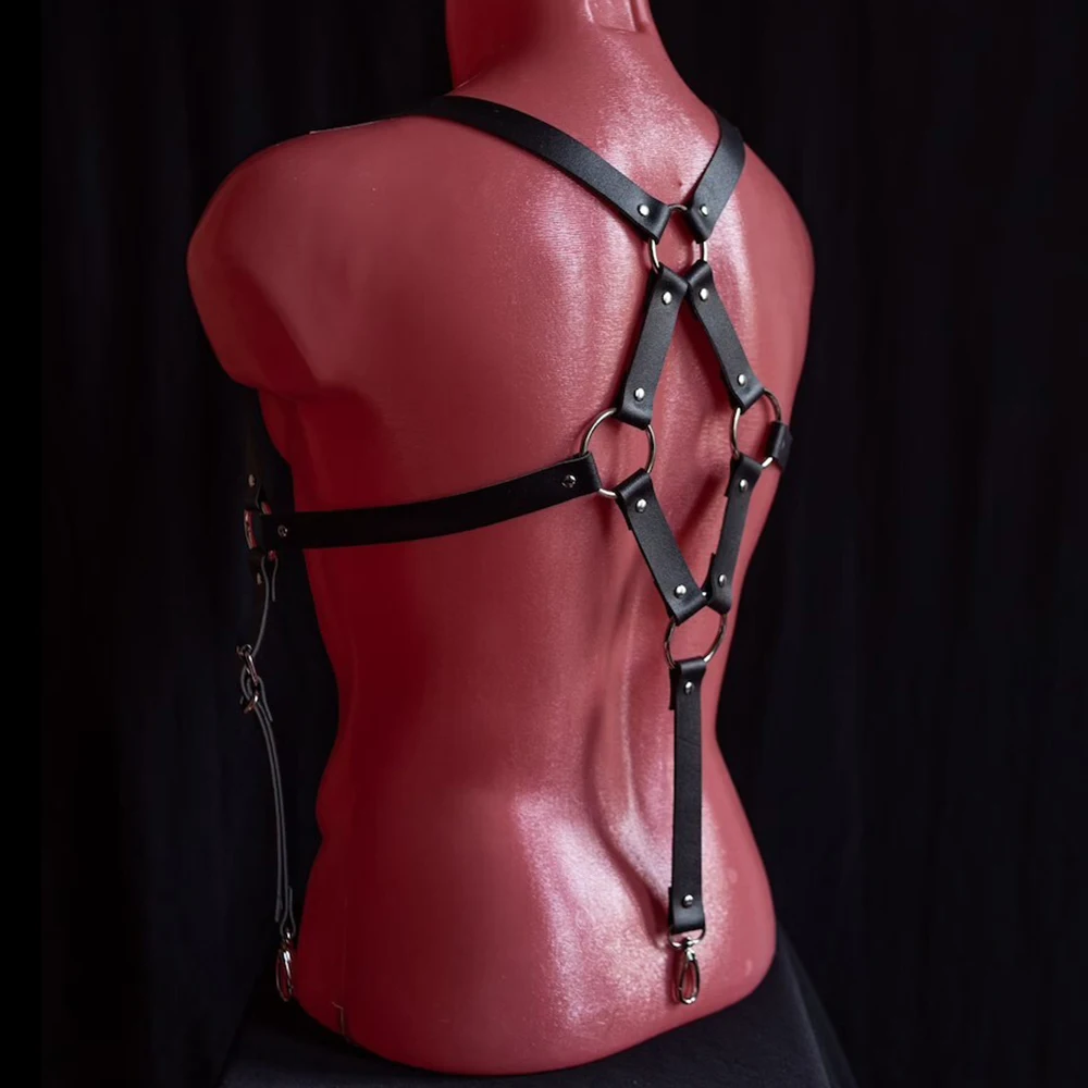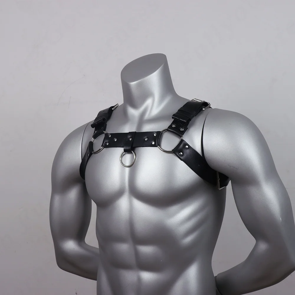 Faux Leather Chest Harness Men Adjustable ual Body Cage Harness Belts Rave Clothing for Adult