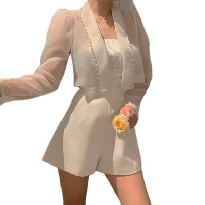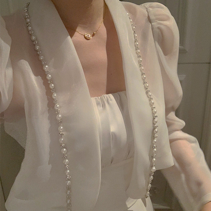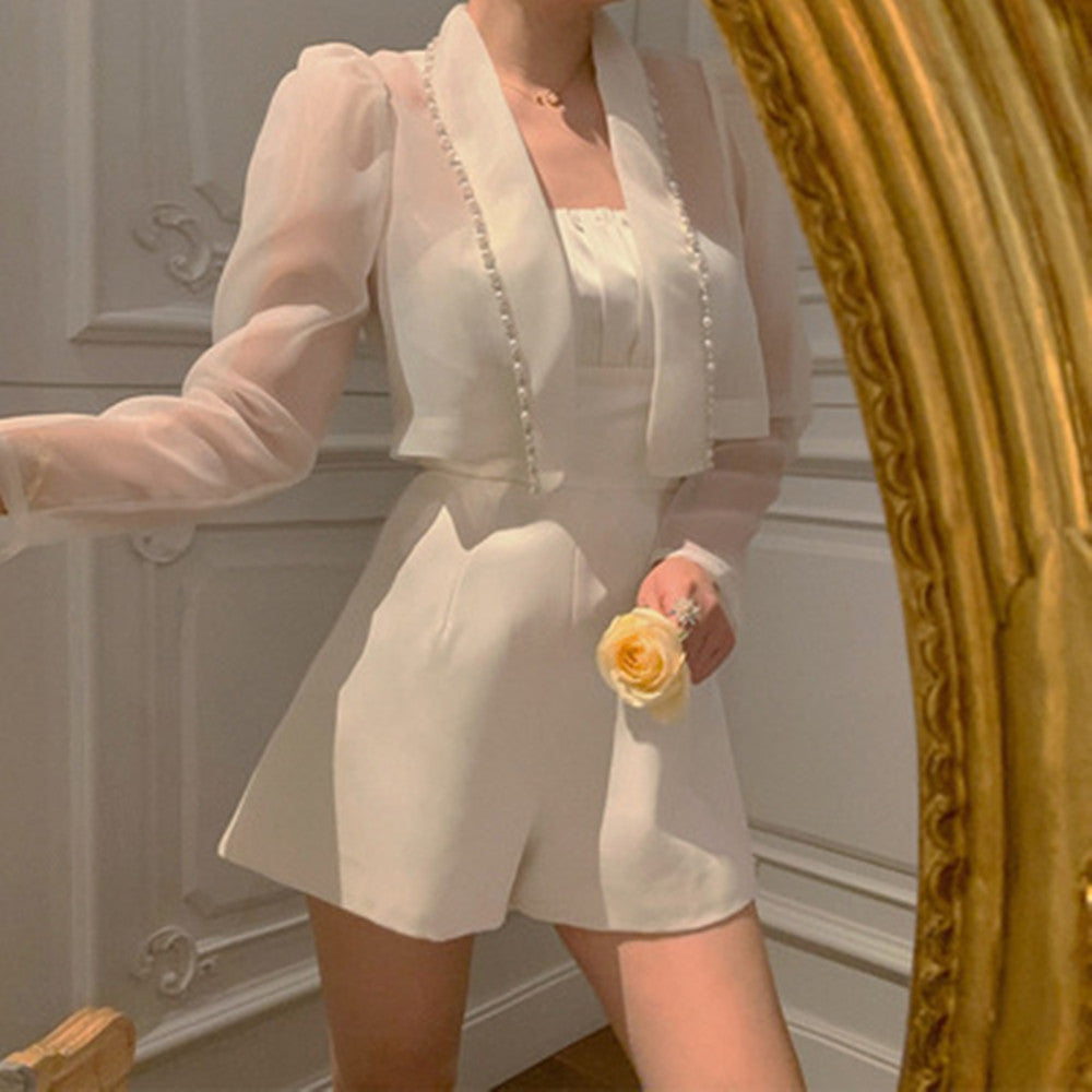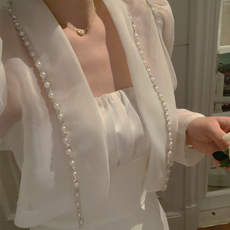 French Vintage Beaded Sexy Bandeau Jumpsuit Two-Piece Set