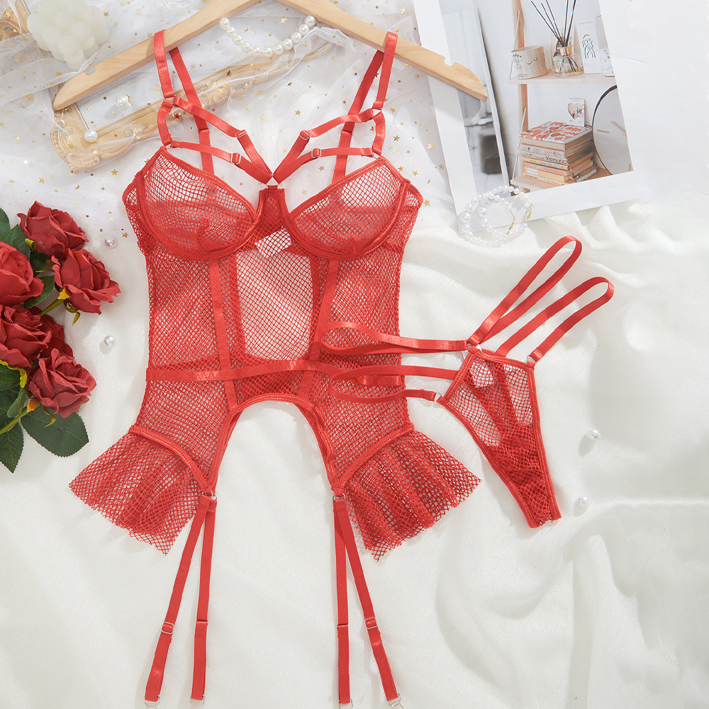 Garter Belt Sexy Lingerie Set Temptation Hollow Out Cutout Fishnet Cloth Sexy Lingerie Summer