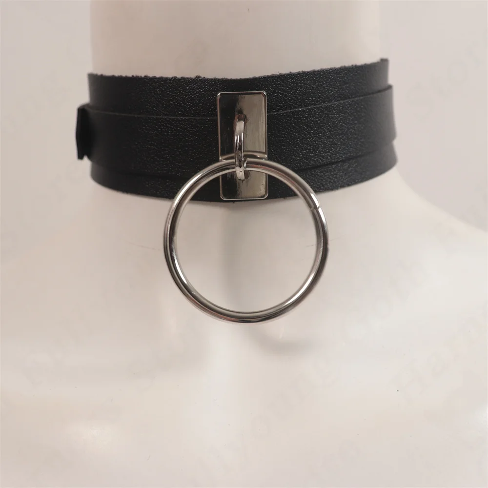 Harajuku PU Leather Choker Necklace For Women Statement Gothic Punk Rock Metal Round Necklaces Anime Party Jewelry