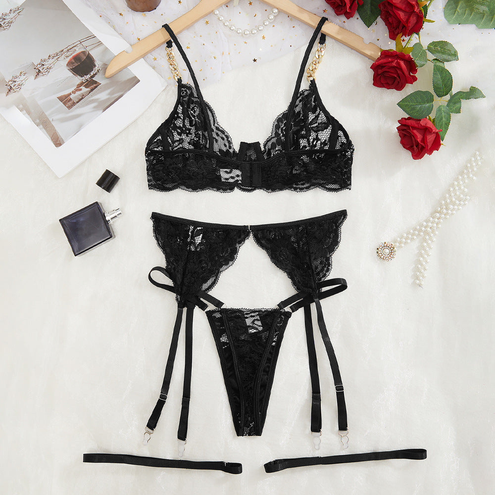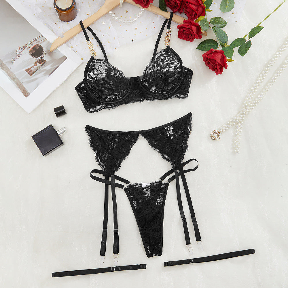 Heavy Industry Sexy Lingerie Sexy Leg Warmer Exquisite Diamond Decorations Lace Garter Belt Four Piece Set Summer
