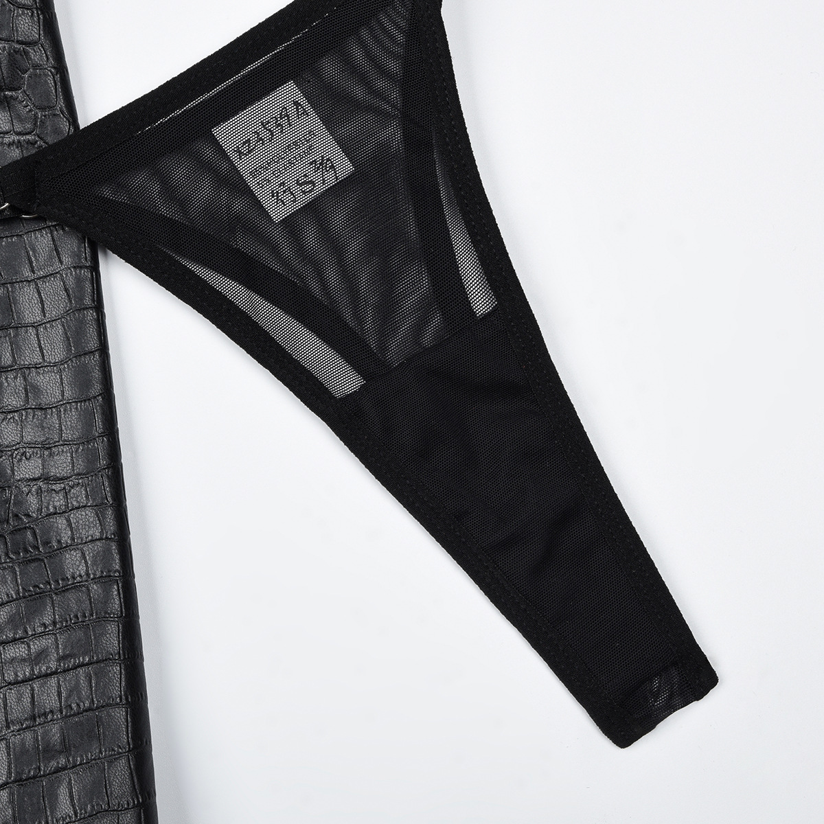 High Quality Fabric Leather Splicing Mesh Sexy Lace up Cross Halterneck Sexy Lingerie Suit