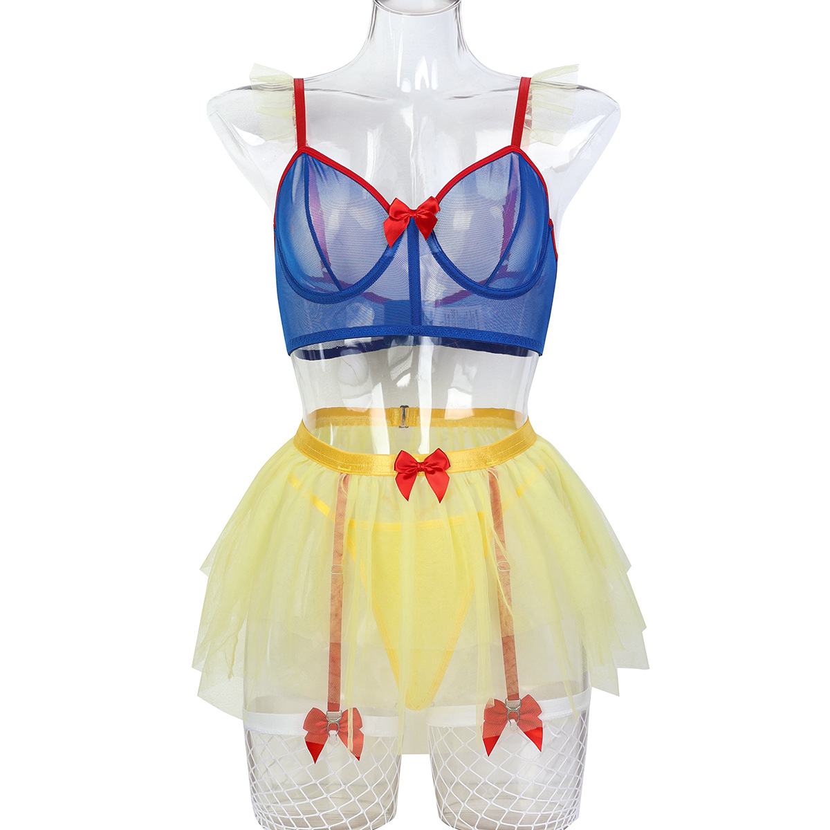 Hollow Out Cutout Net Socks Butterfly Blue Contrast Color Mesh Yellow See Through Sexy Underwear Sexy Four Piece Set Women