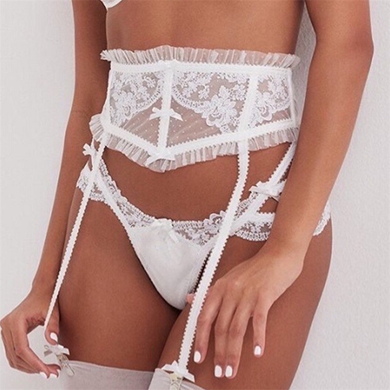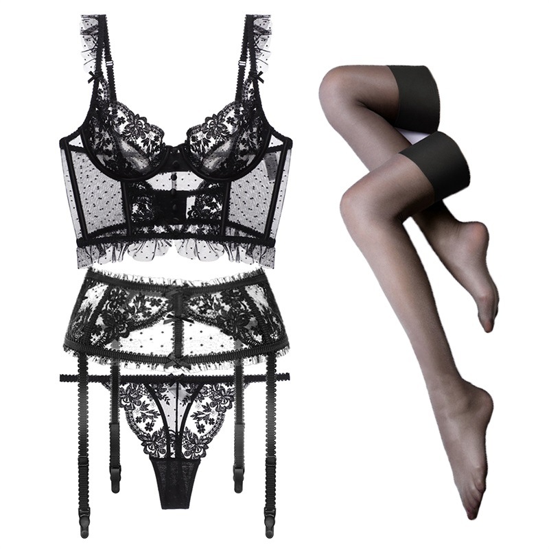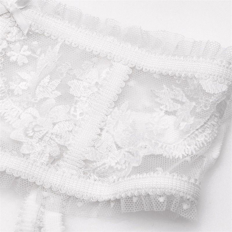 Lace Embroidery No Mold Cup Vest Bra Girl Sexy Four Piece Set