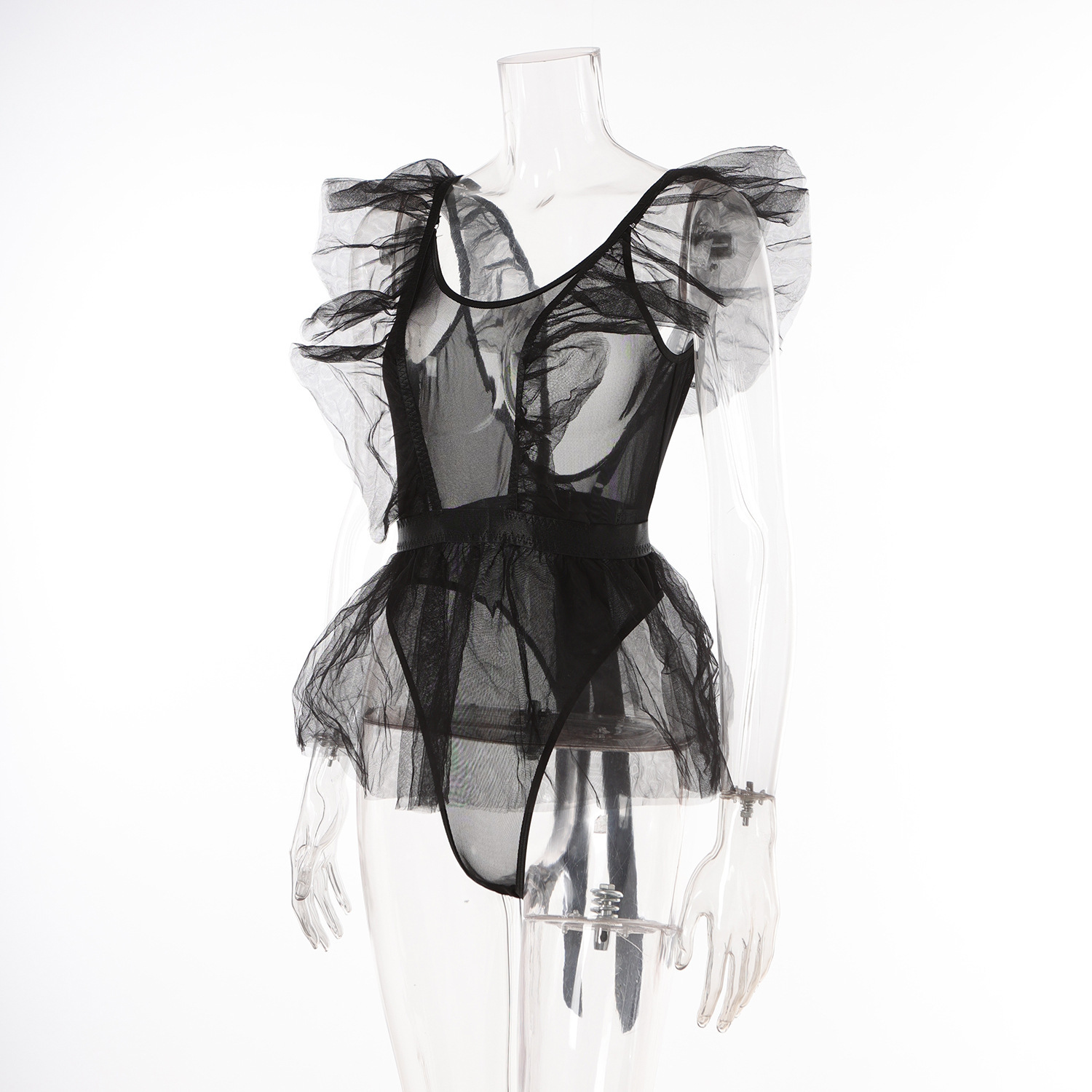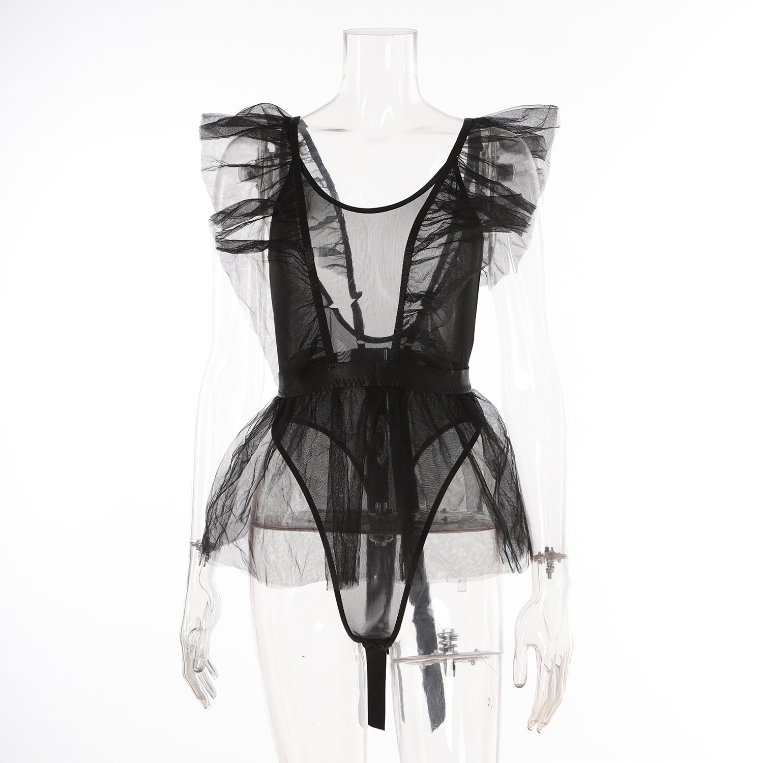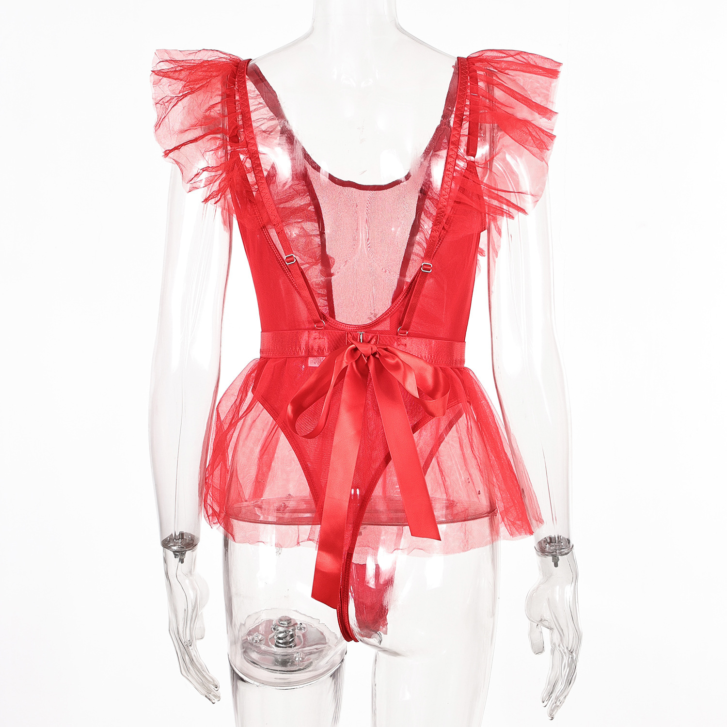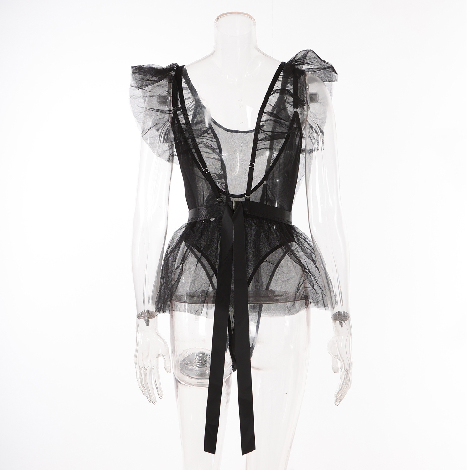 Lace Mesh See through Thin Backless Corset Sexy Lingerie Set