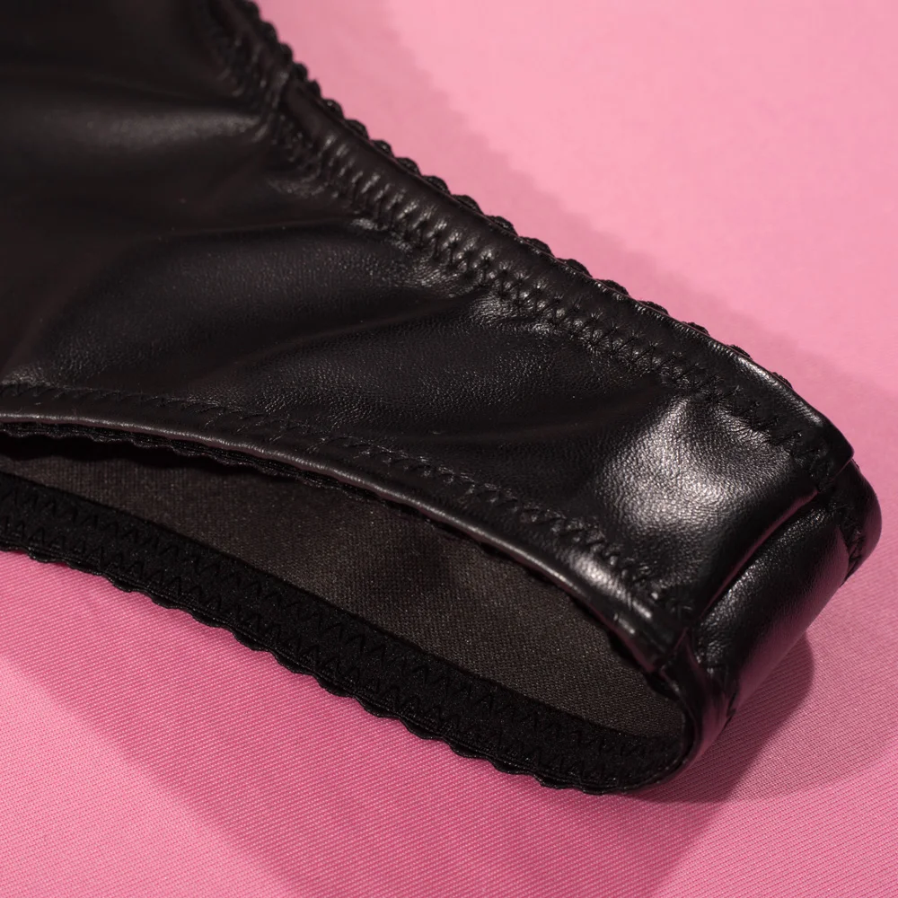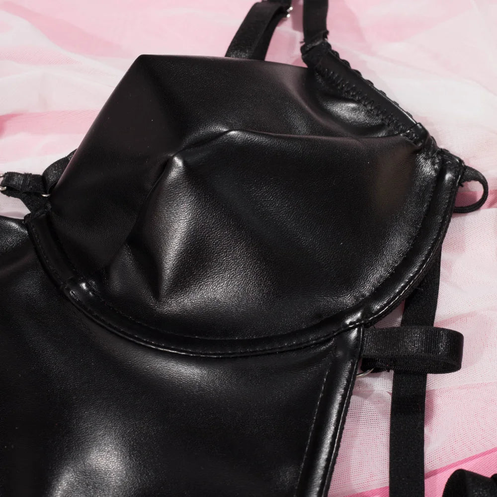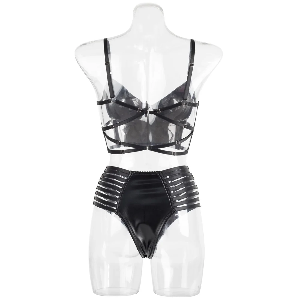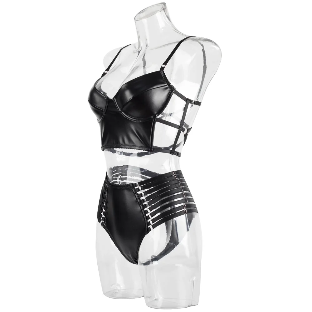 Leather Lingerie y Underwear Push Up Bra and Panty Set Seamless PVC Intimate y Panties Matching Sets