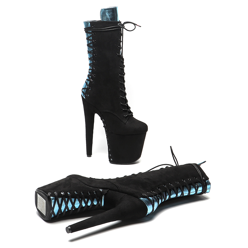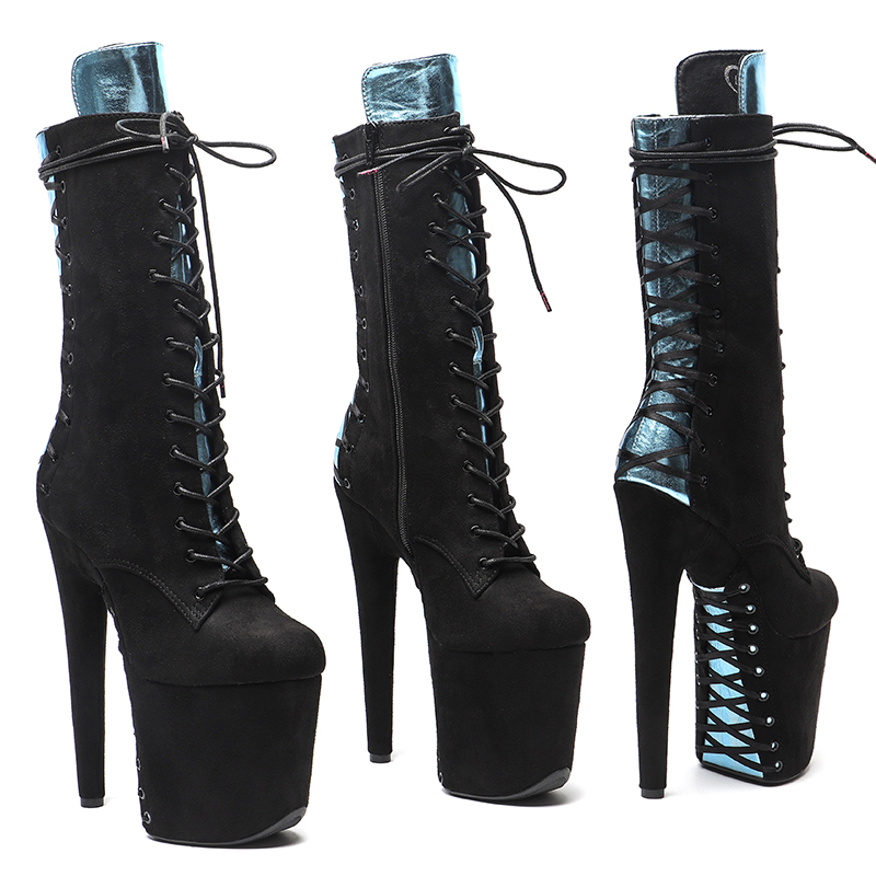 20CM/8Inch suede upper ankle Boots Nightclub Stiletto Pumps Side Zipper High Heels Women's Party Shoes 4B