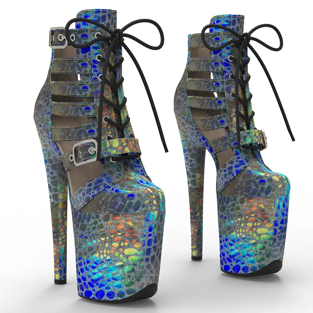 20CM/8inches holography PU Upper Fashion Trend Platform Ankle Boot Pole Dance Boot