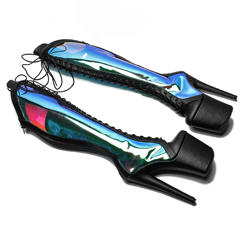 20CM/8inches matte upper Women New Design Extreme High Heel Dancing Stripper knee high Shoes Platform Lace-up 5B