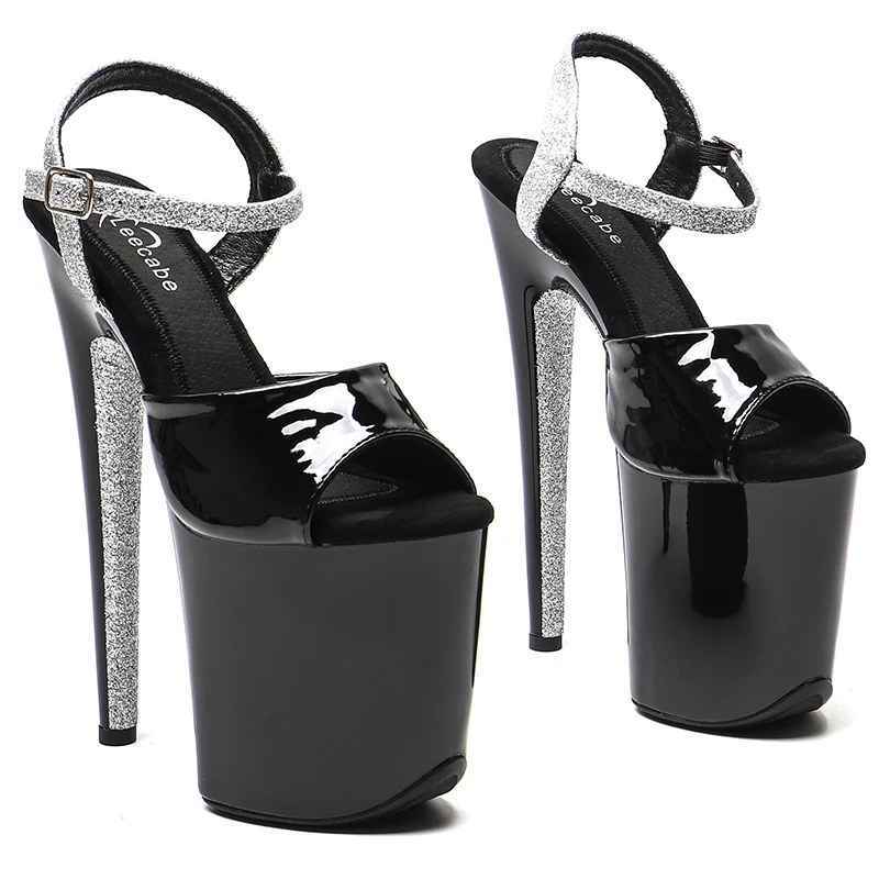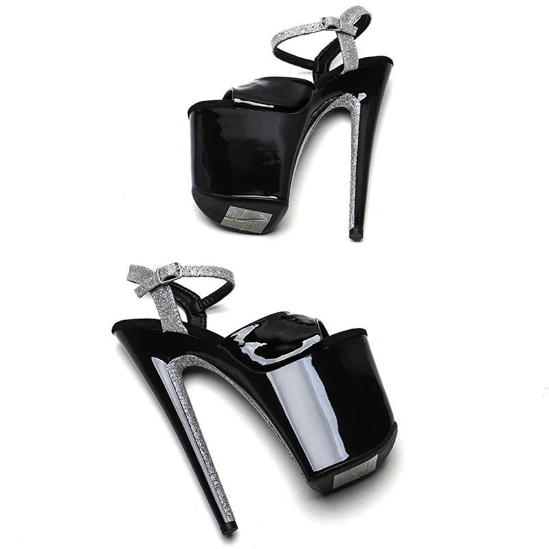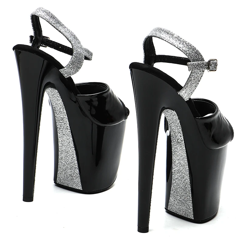 20cm/ 8inches Patent PU Upper black-silver glitter platform high heel open toe sandals pole dance shoes