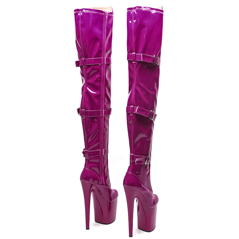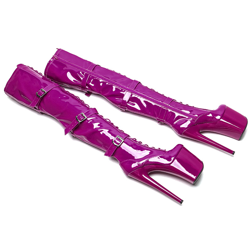 20CM/8inches Patent Upper Women Fashion High Heel Platform Lace Up Thigh High Boots Pole Dance Boots
