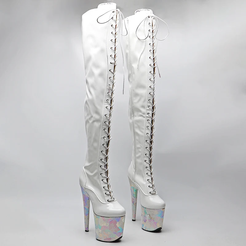 20CM/8inches Shiny Patent PU Upper with snake PU High Heel platform Boots Pole Dance boots