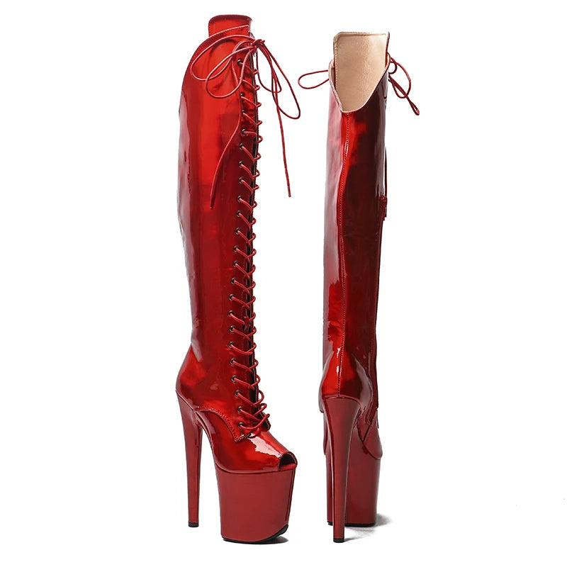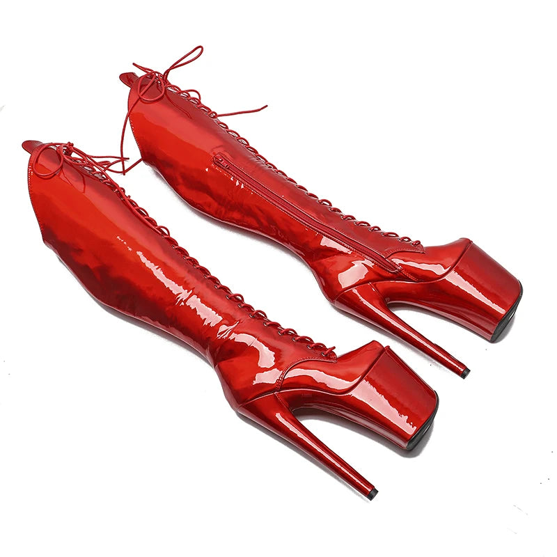 20CM/8inches Shiny PU Pole dancing shoes High Heel platform Boots Small Open toe Pole Dance boots