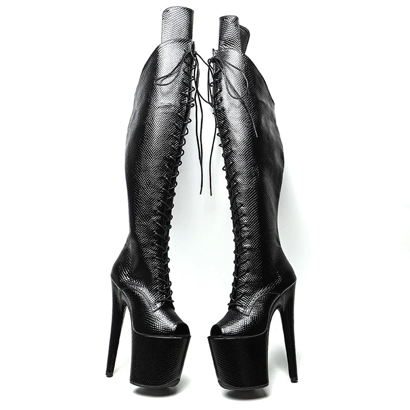 20CM/8inches Snake Upper Open Toe Trend fashion High Heel platform Boots Pole Dance boots