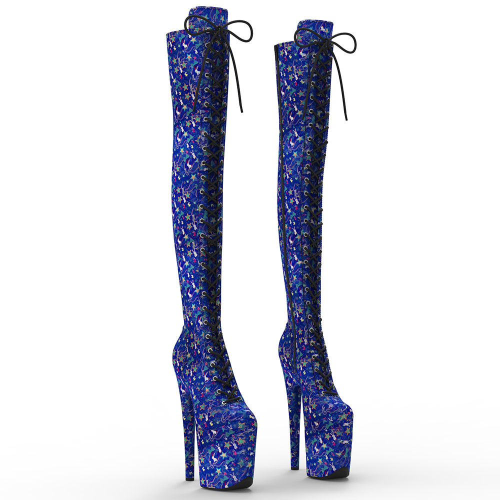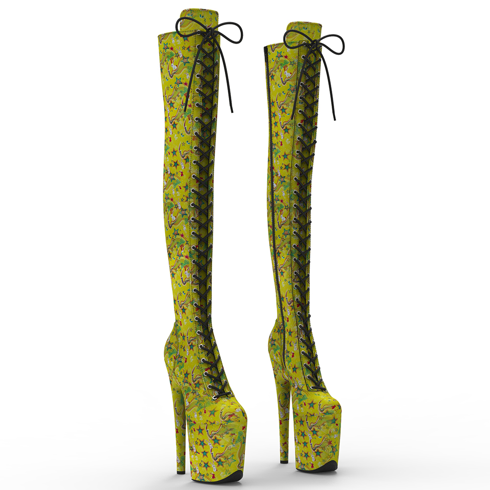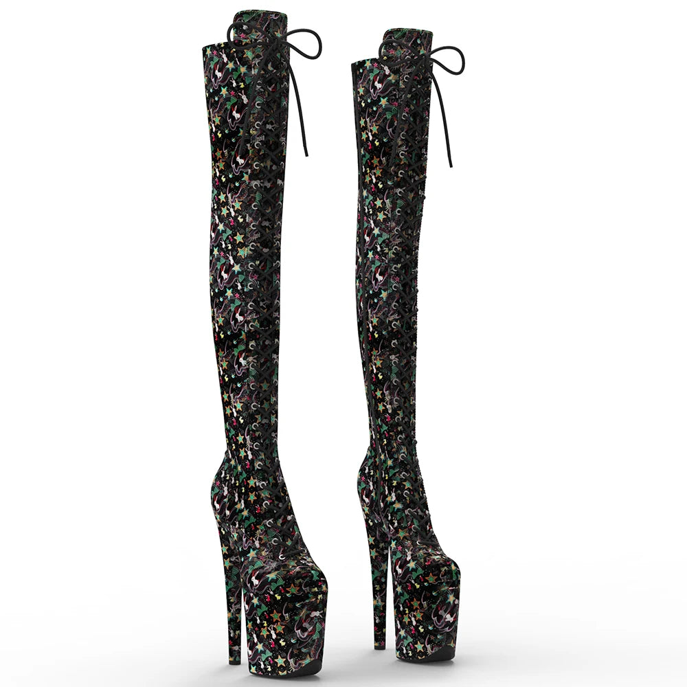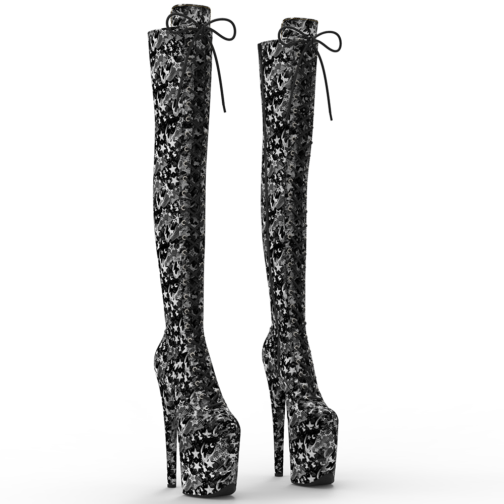 20cm/8inches Stars And Rabbits Pattern Fashion High Heel Platform Thigh High Boots Pole Dancing Boots
