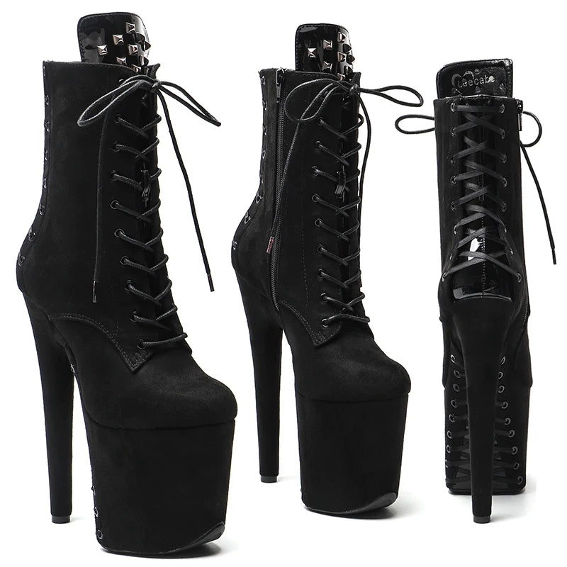 20CM/8inches Suede upper with patent PU Nightclub Stiletto Pumps High Heels Women's Party Shoes