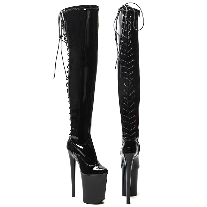 23CM/9inches Patent Material PU Fashion Lady High Heel Platform Pole Dance Boots