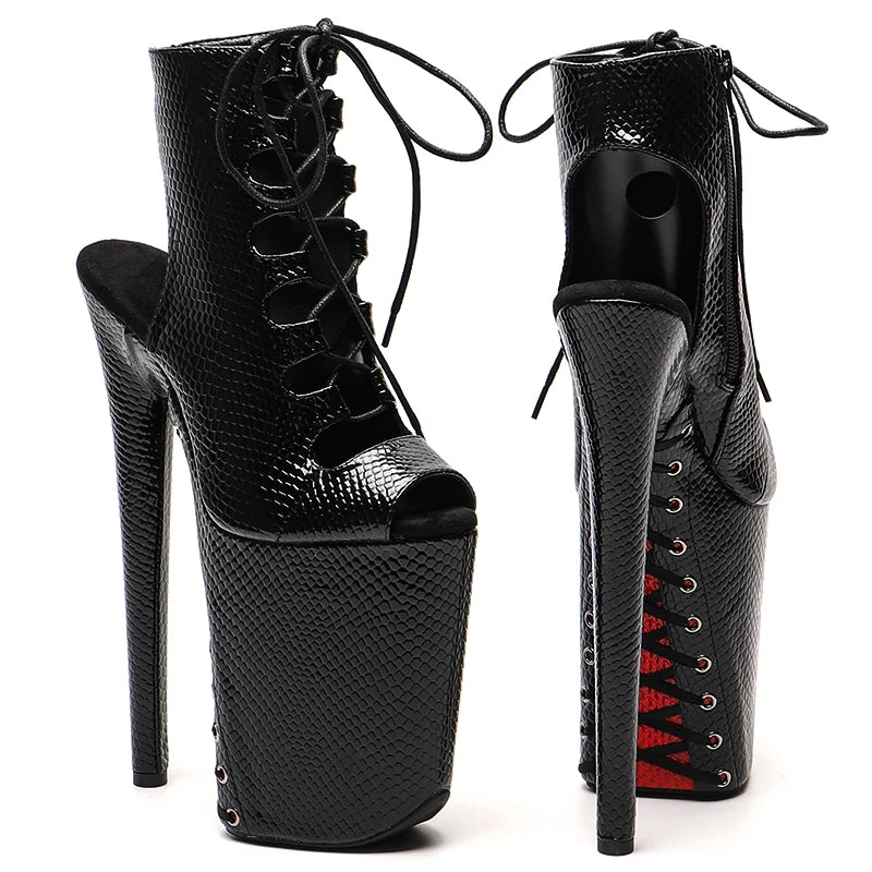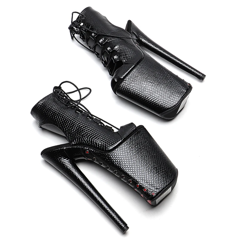 23CM/9inches Snake PU small open toe electroplate platform Fashion trends dancing Pole Dance boots
