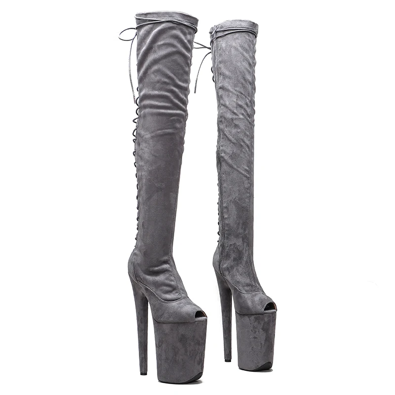 23CM/9inches Suede Upper fashion lady small open toe High Heel platform Pole Dance boots