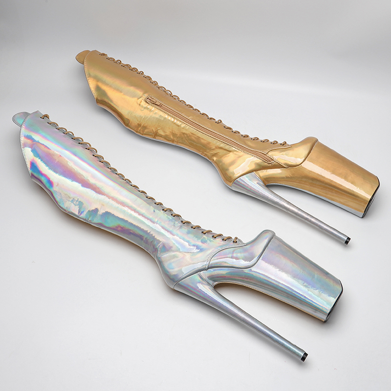 26CM/10inches color matching Extreme High Heels Platform Boots Lace Up y Pole Dancing knee high boots 5BY