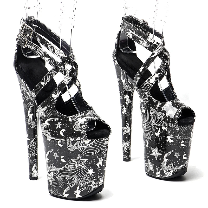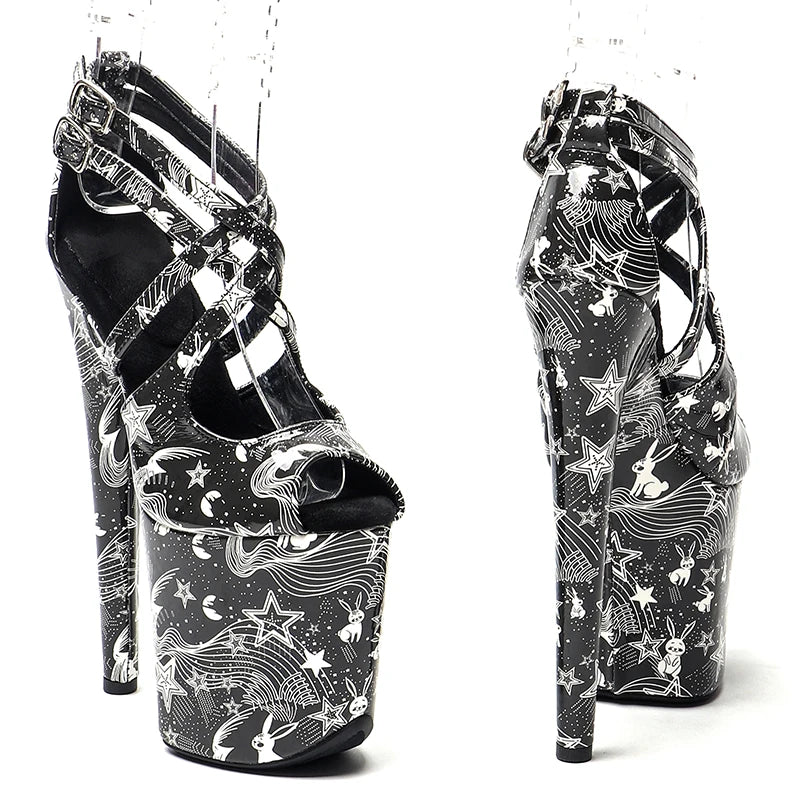 8Inch/20cm Patent PU Stars and rabbits pattern Platform Sandals party High Heels Shoes Pole Dancing Shoes