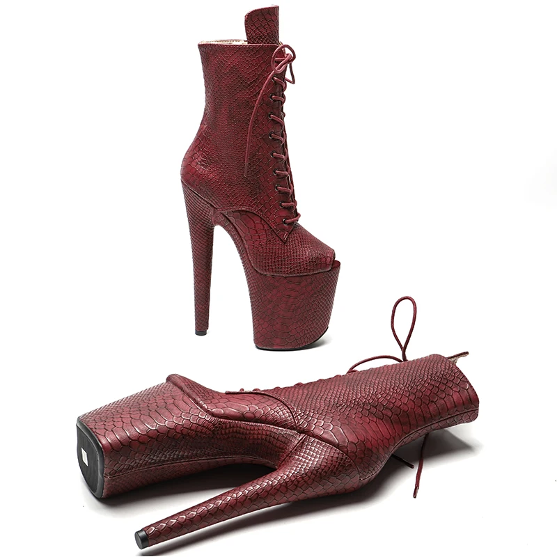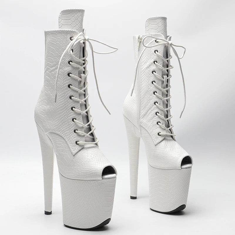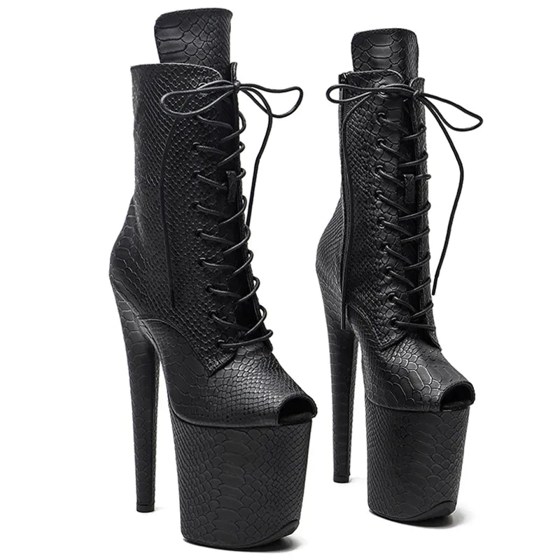 Matte PU Snake UPPER 20CM/8Inch Small Open toe Platform disco party High Heels Shoes Pole Dance boot