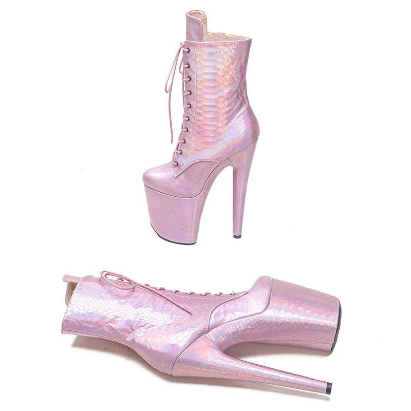 Pink holo snake 20CM/8inches High Heel platform Boots closed toe Pole Dance boots
