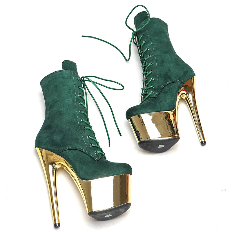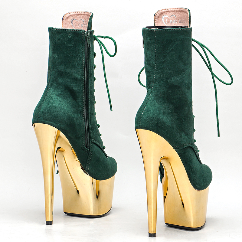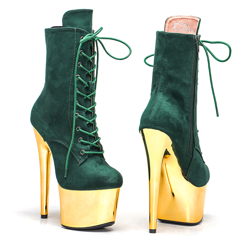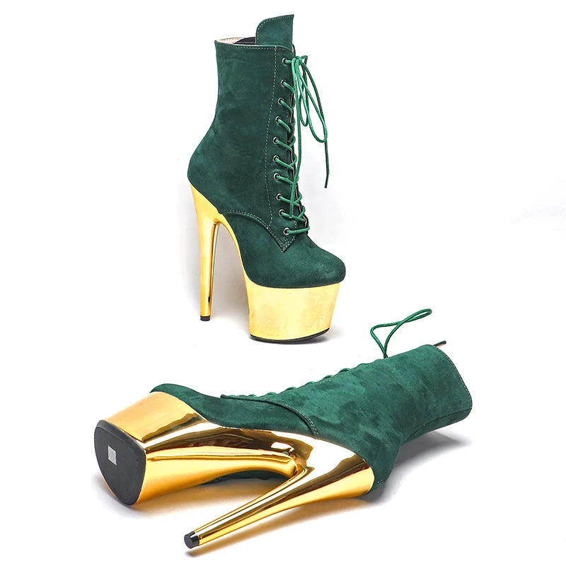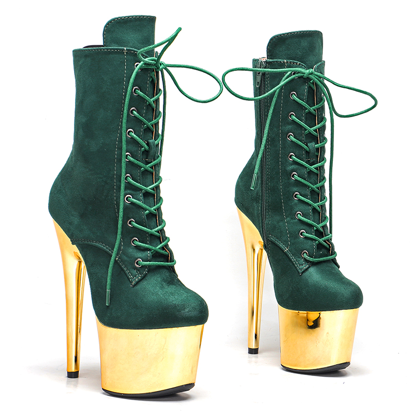 17CM/7Inches Suede with Electroplate High Heel Platform Boots Closed Toe Pole Dance Boot