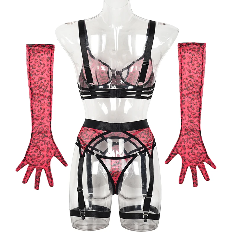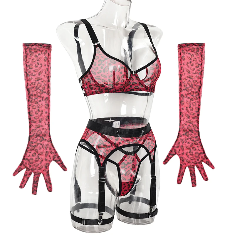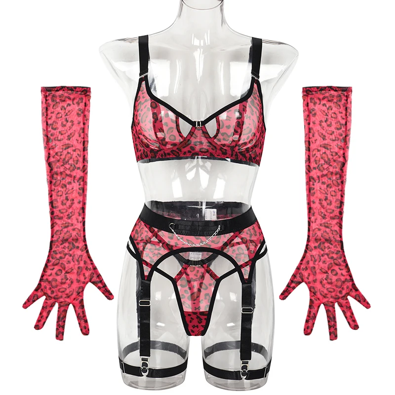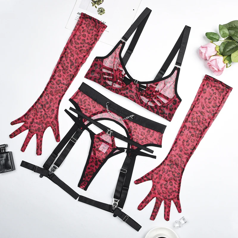 Leopard Lingerie For Fine Red Cut Out Bra Sexy Suspenders Hot Intimate Quality Transparent Sensual Onlyfan Mesh Set