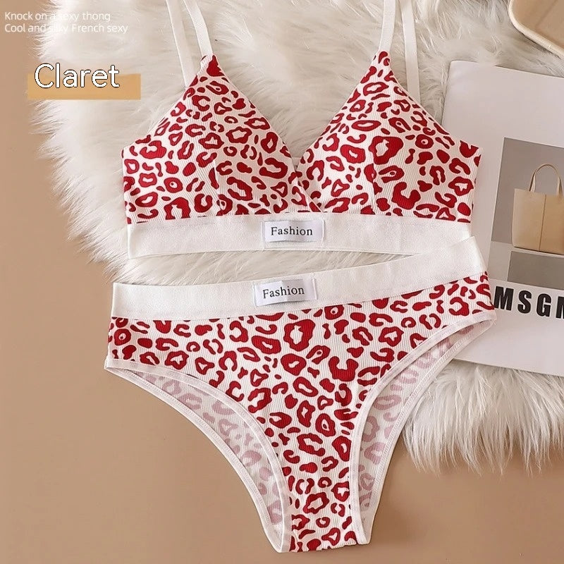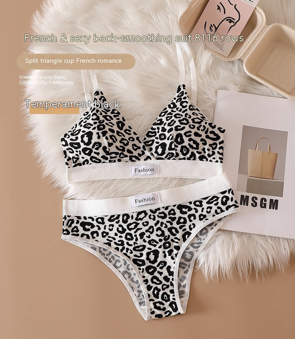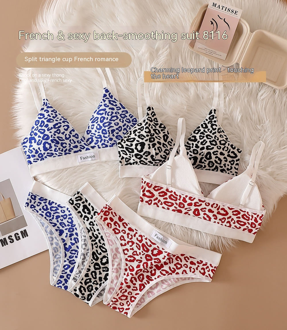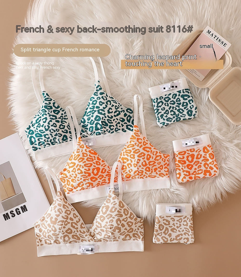 Leopard Print Seamless Wireless Bra Adjustable Shoulder Lingerie Set