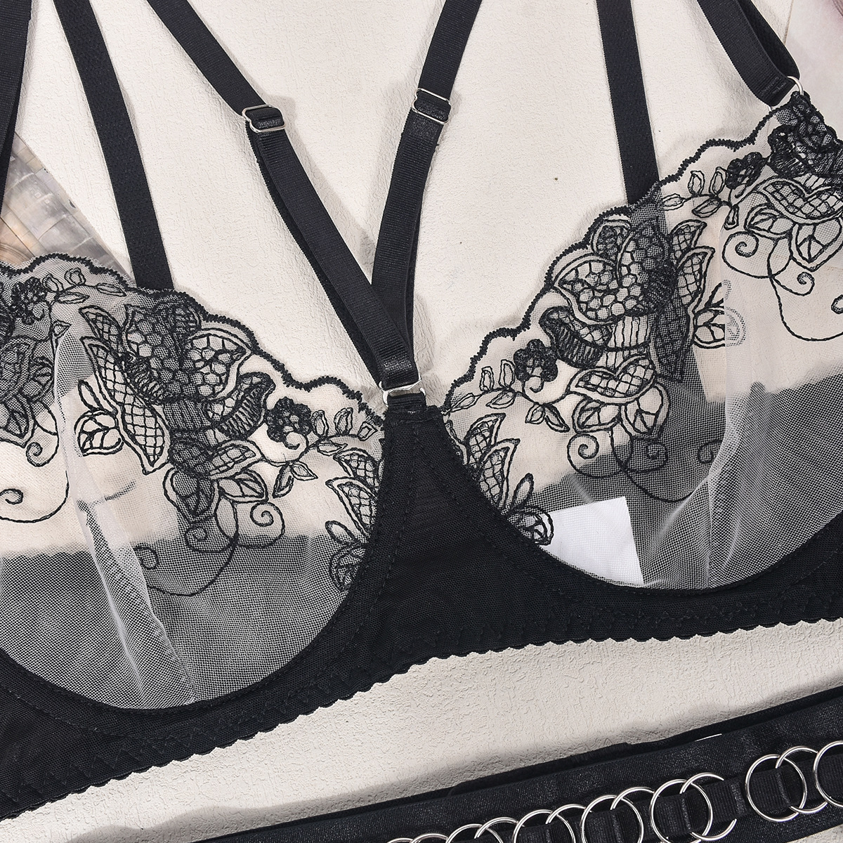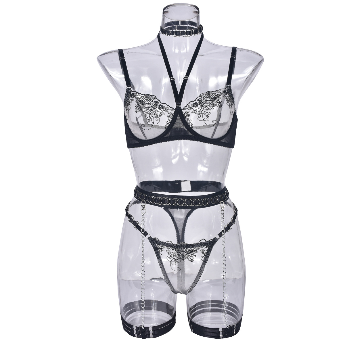 Lingerie Embroidery Sexy Lingerie Complex Metal Heavy Craft Halter Neck Ring Five Piece Set